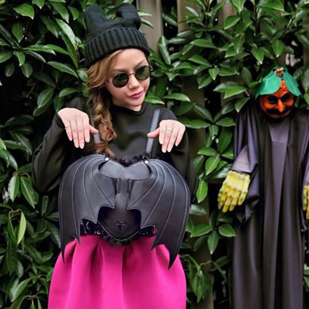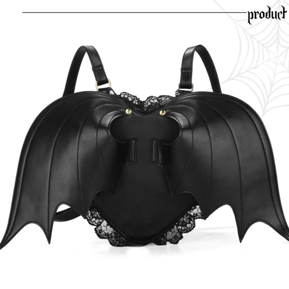Рюкзак женский черный в готическом стиле, с крыльями вампира, для отпуска, Хэллоуина, Косплея