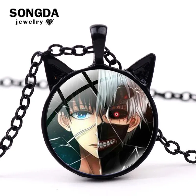 Ожерелье из аниме Токийский Гуль с мультяшными рисунками, круглые стеклянные ожерелья с кабошоном и кошачьими ушками, Подвеска Бижутерия ручной работы