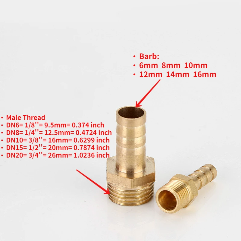 Медная труба Fitting6mm 8 мм 10 мм 12 мм 14 мм 16 мм 19 мм штуцер для шланга хвост 18 "14" 12 "38" прямой Barb, чтобы фитинги BSP с наружной резьбой переходник