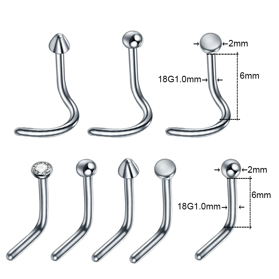Серьга-гвоздик для носа из титана с фианитом, ювелирное украшение для пирсинга с хрустальным шариком в форме буквы L, 1 шт., 20 г