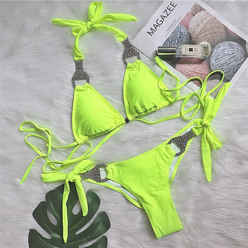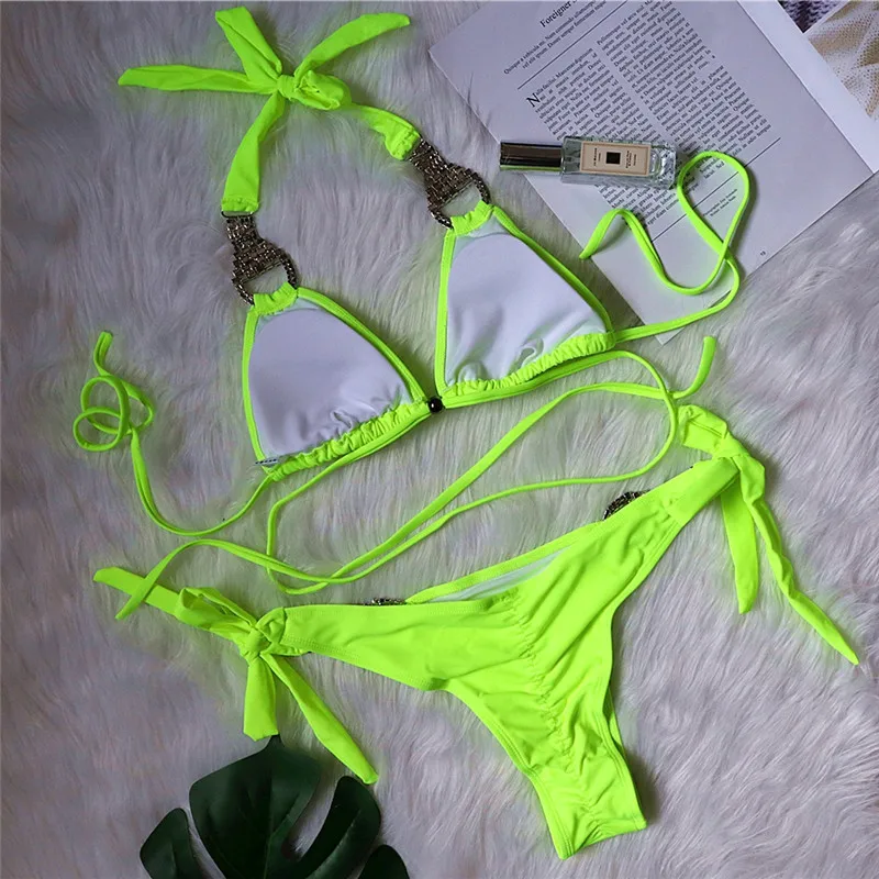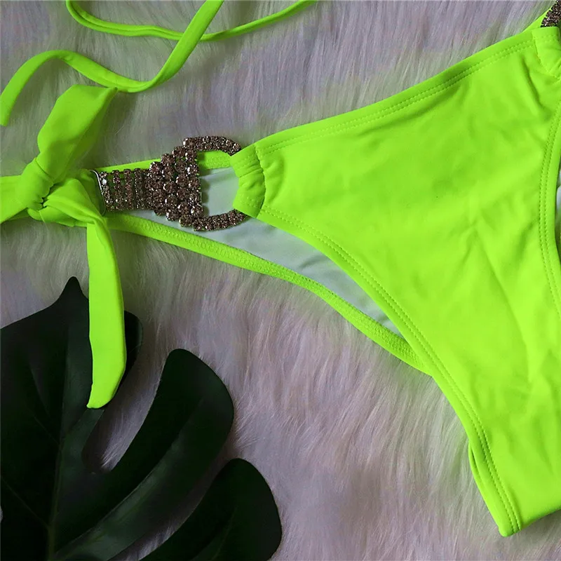 Женский купальник-бикини Mossha, неоновый зеленый купальник с открытой спиной и низкой талией в стиле ретро, пляжная одежда