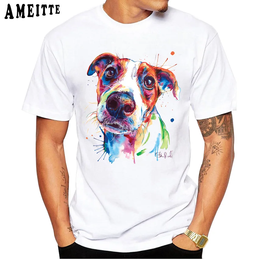 Футболка мужская с коротким рукавом, модная тенниска с забавным принтом Джека Рассел терьера, крутой щенок, повседневный Топ белого цвета, хипстерская футболка, лето