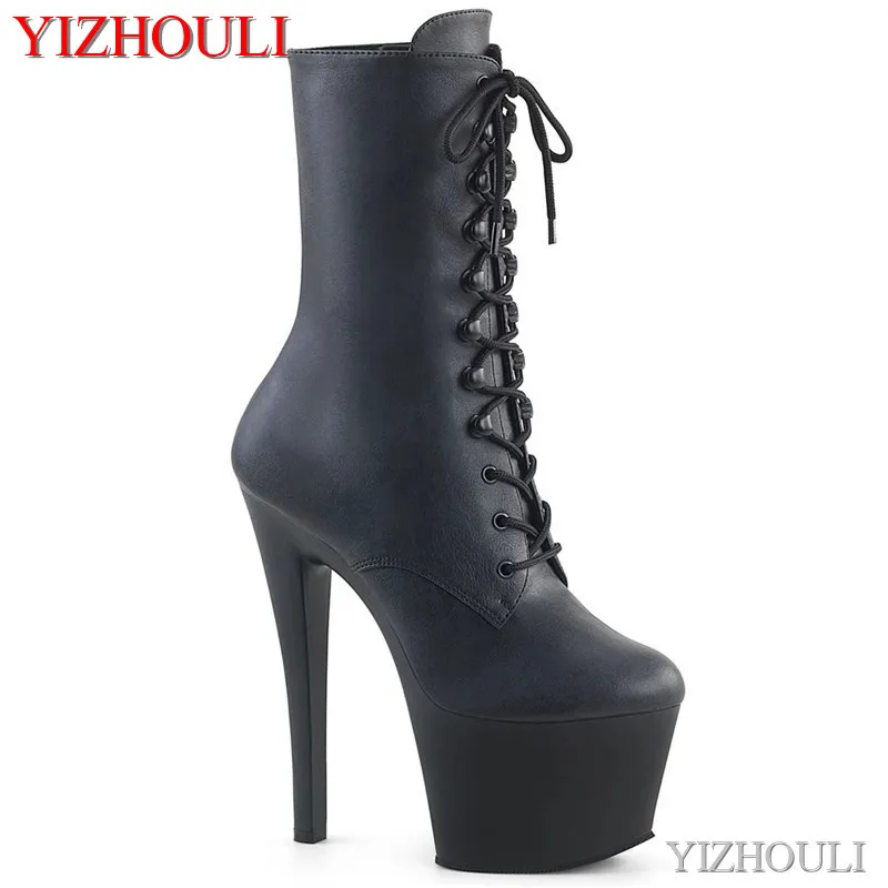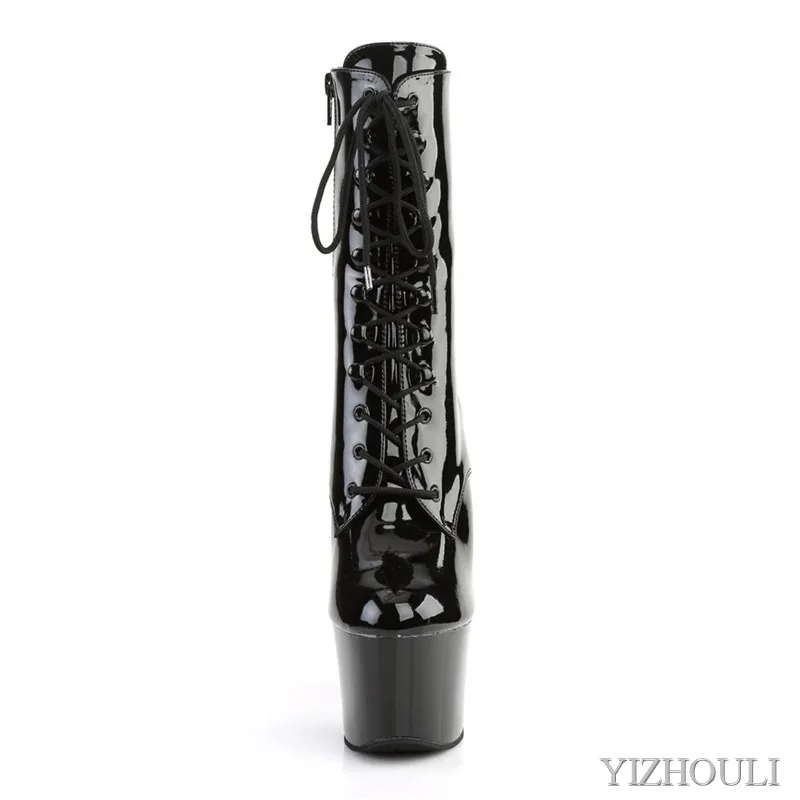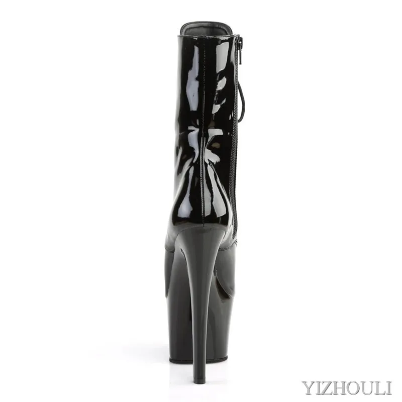 Блестящие ботильоны из искусственной кожи; Обувь на высоком каблуке 17 см с круглым носком; Пикантная обувь для танцев на шесте; Обувь для ночного клуба