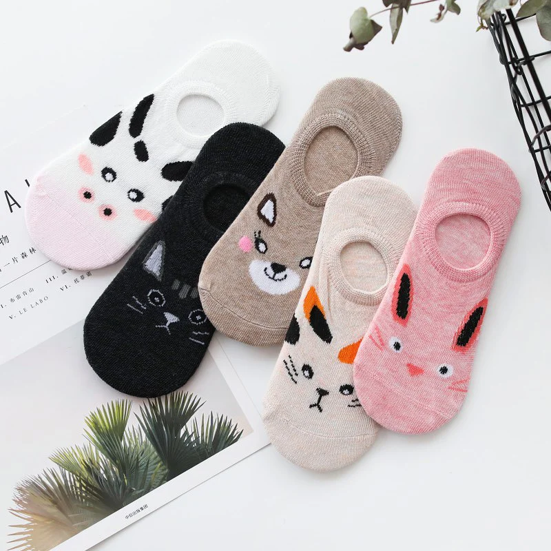 Новые Модные 5 паралот, женские милые носки с животными, женские осенние корейские кавайные короткие носки в стиле Харадзюку с забавным низким вырезом, уличная одежда Happy Sox