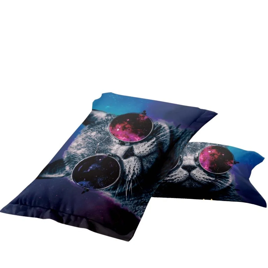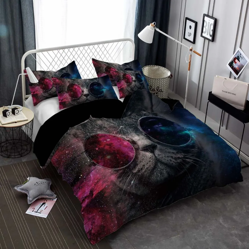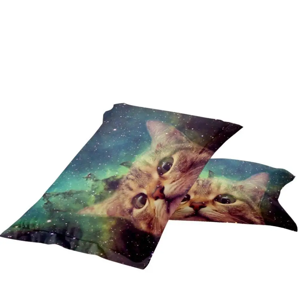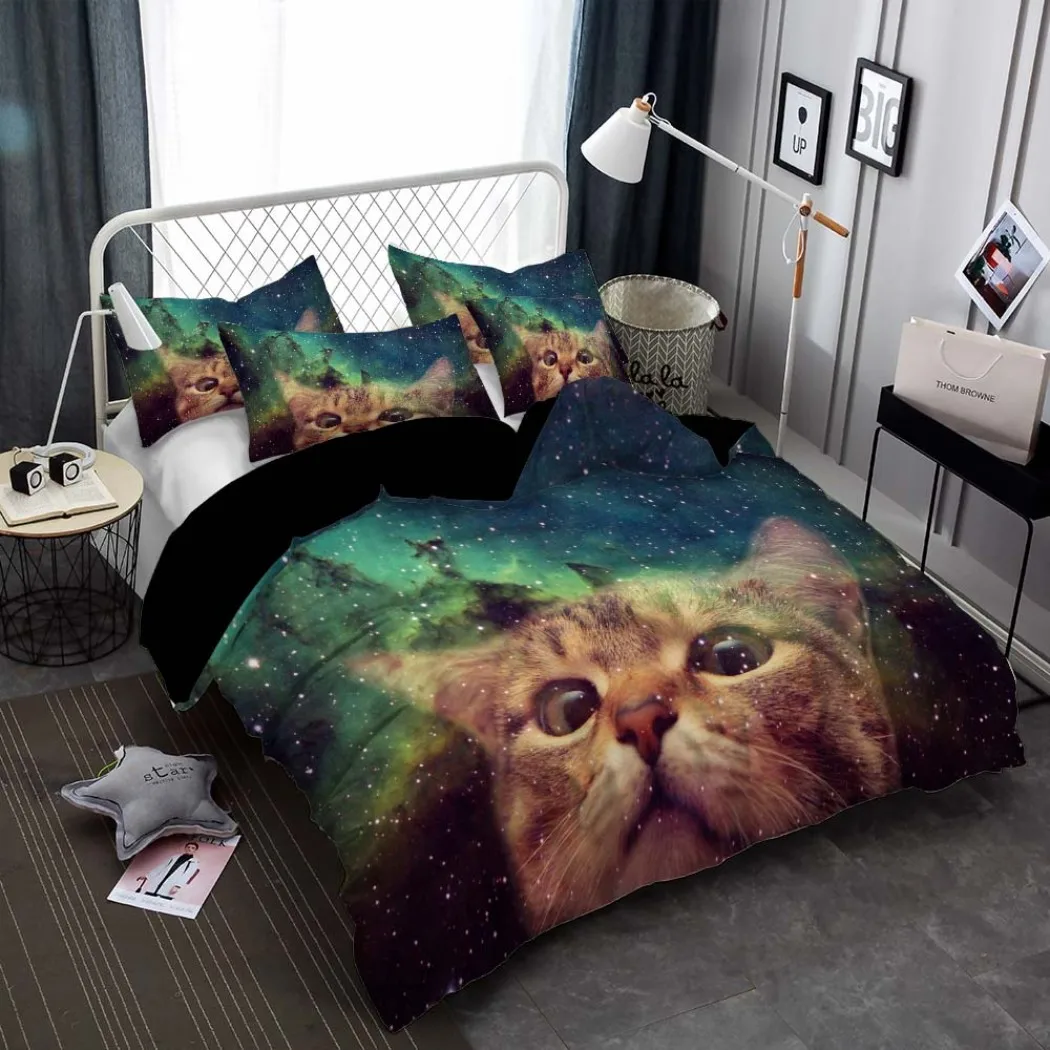 3D Galaxy Cat набор пододеяльников для пуховых одеял с одной двойной/королевской 2/3 шт., комплекты постельного белья, наволочки, космическое пространство, постельное белье