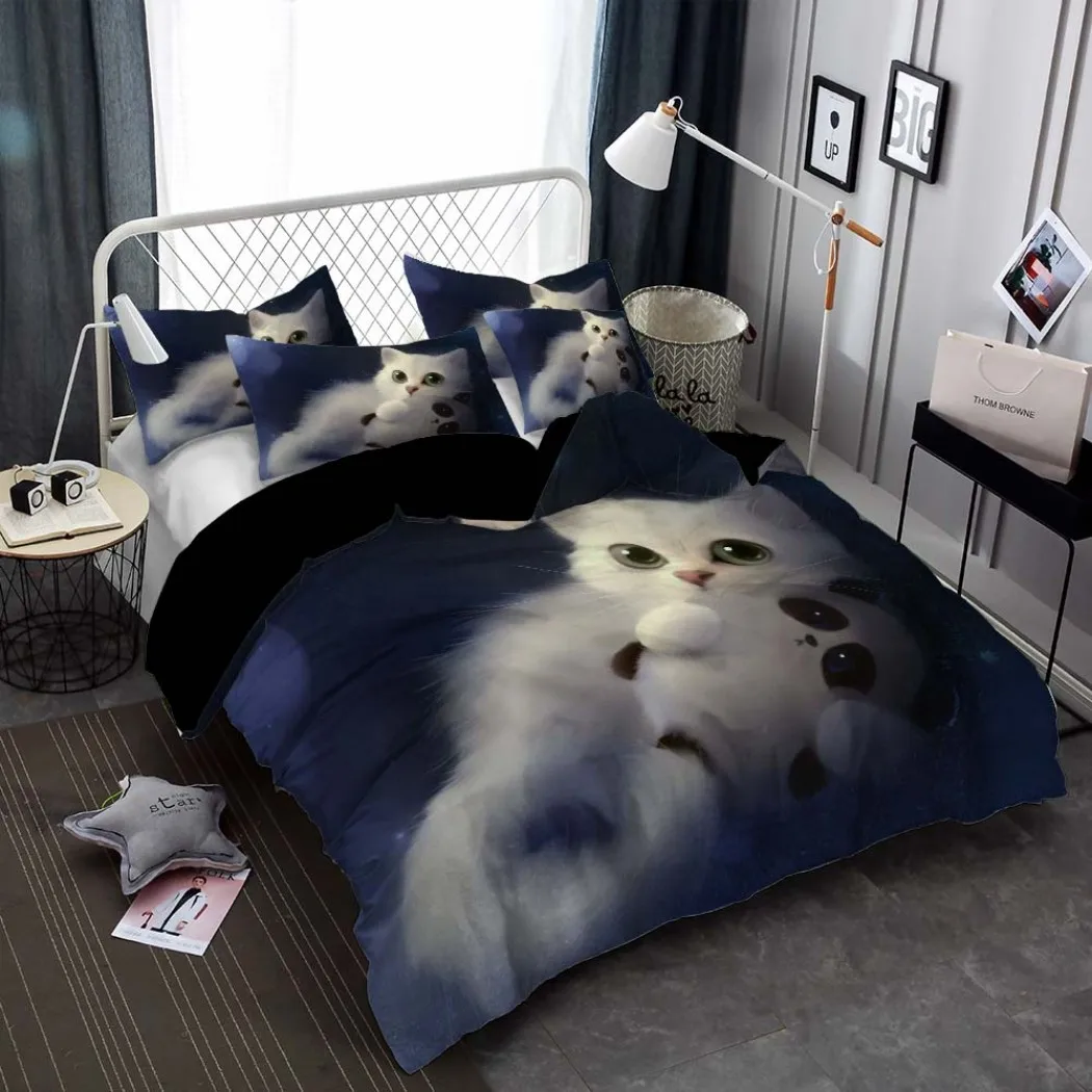 Комплект постельного белья из 23 предметов, постельное белье с 3D изображением Галактики, кота, пододеяльник для односпальной и двуспальной кровати, наволочки, Вселенная, космос