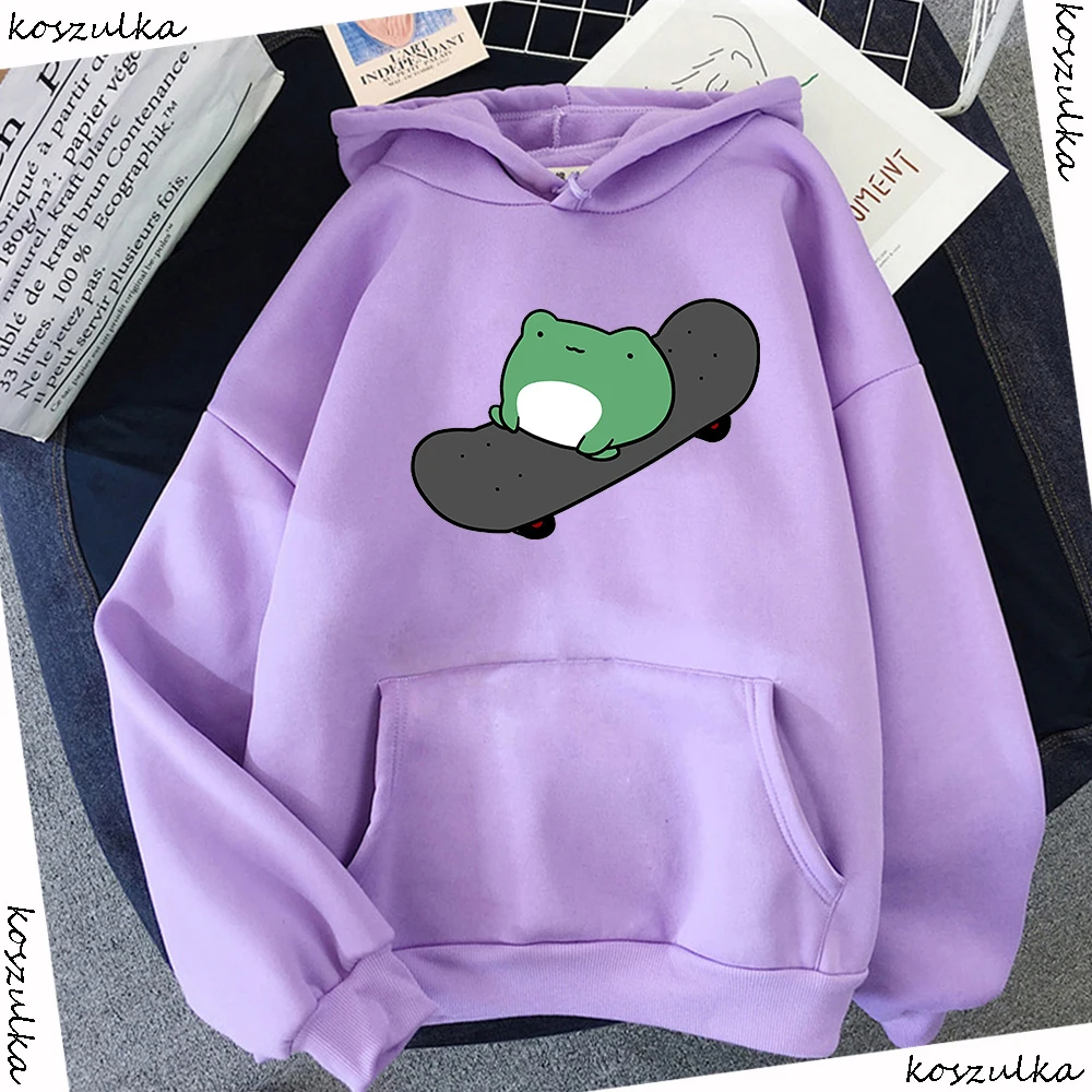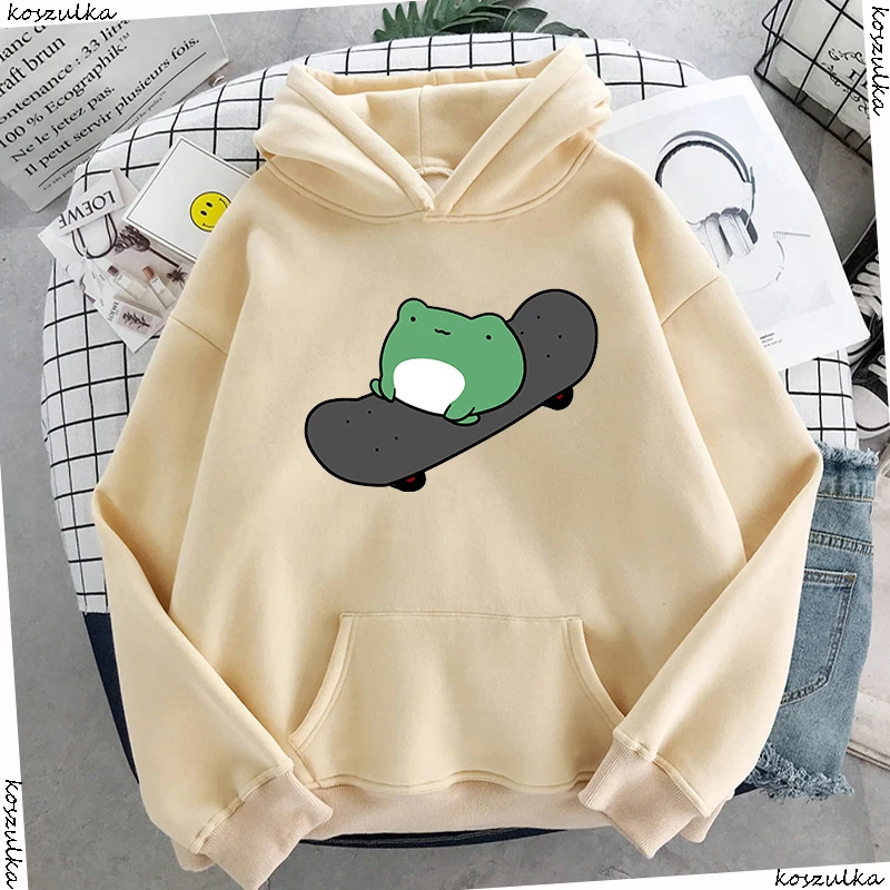 Толстовка Оверсайз с рисунком лягушки для скейтбординга, милые худи для женщин, женская одежда, корейский Свитшот