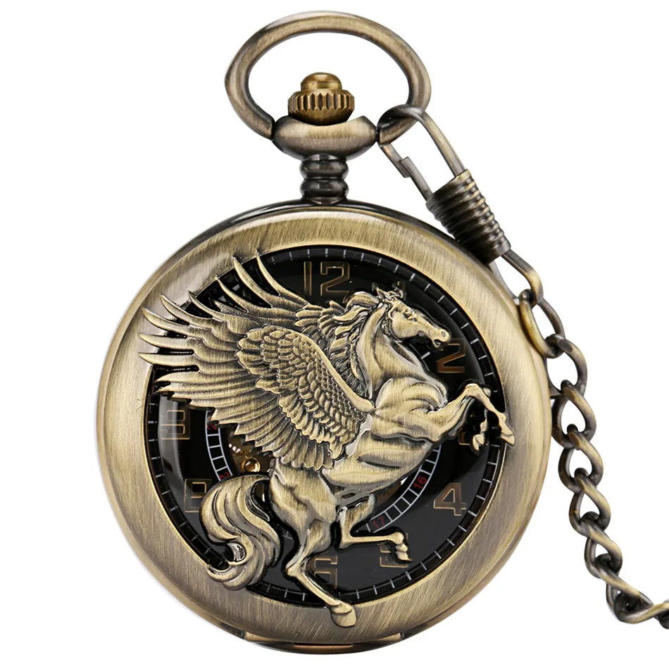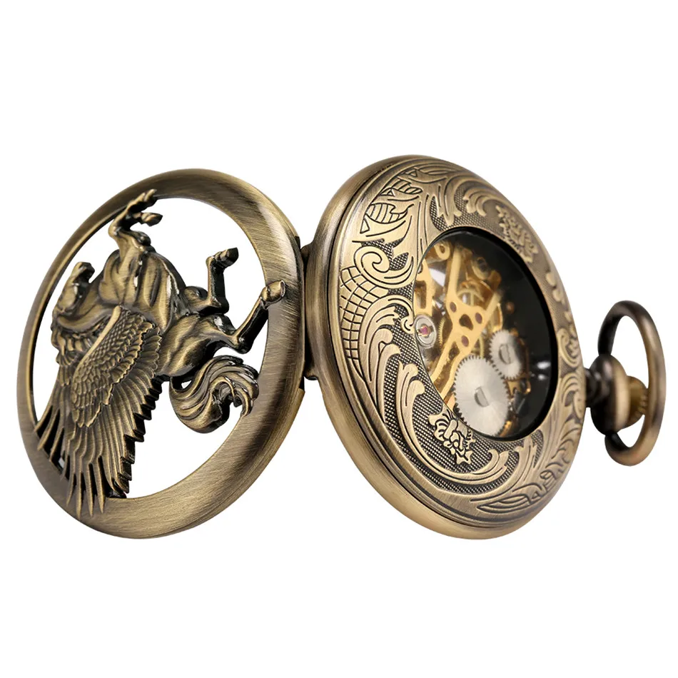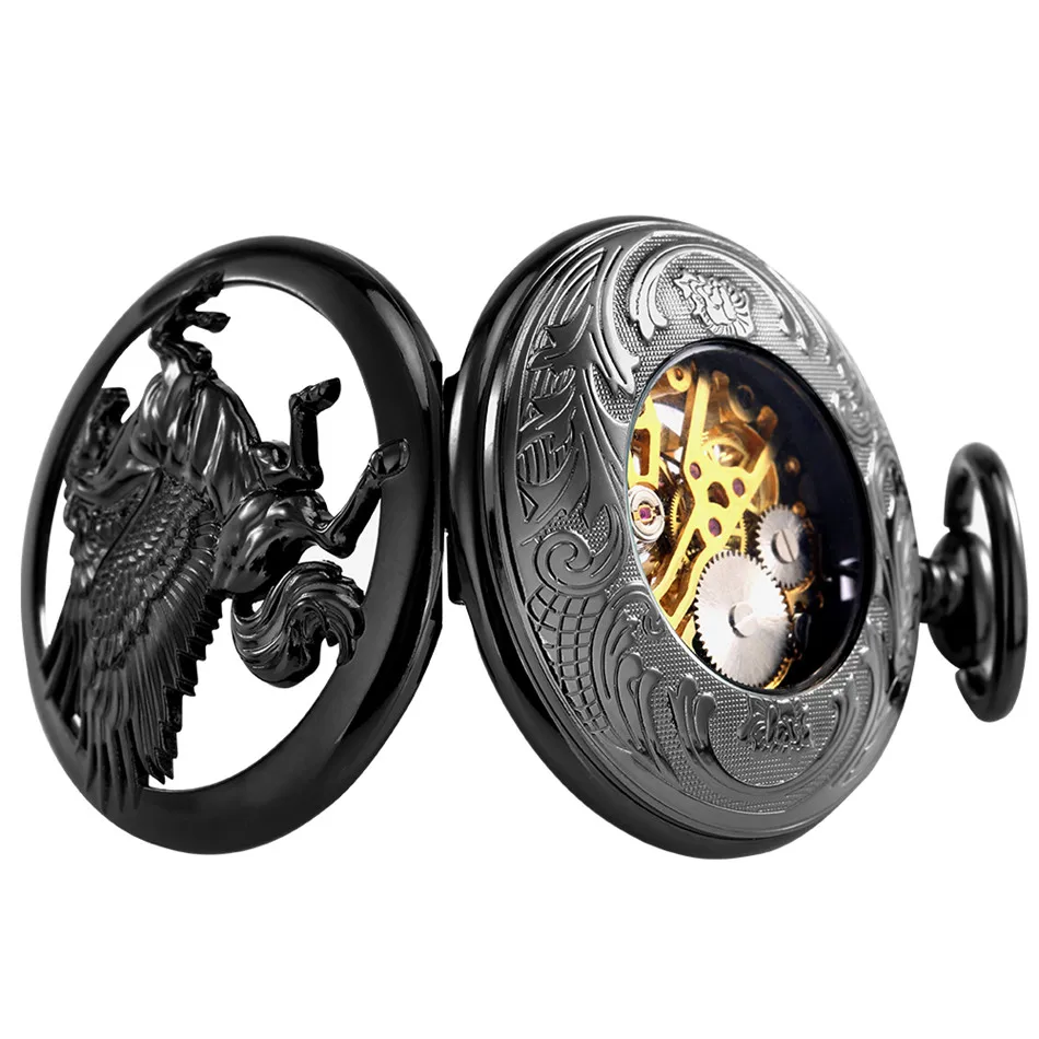 Античная Бронзачерный лошадь Дисплей ручные механические карманные часы Fob цепь кулон карманные часы для мужчин и женщин, подарок на Рождество
