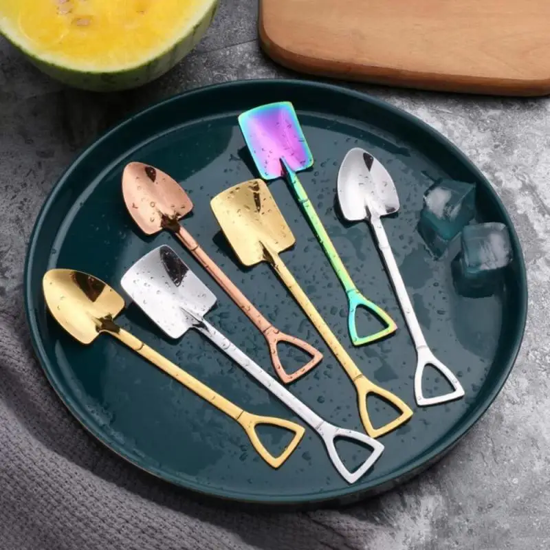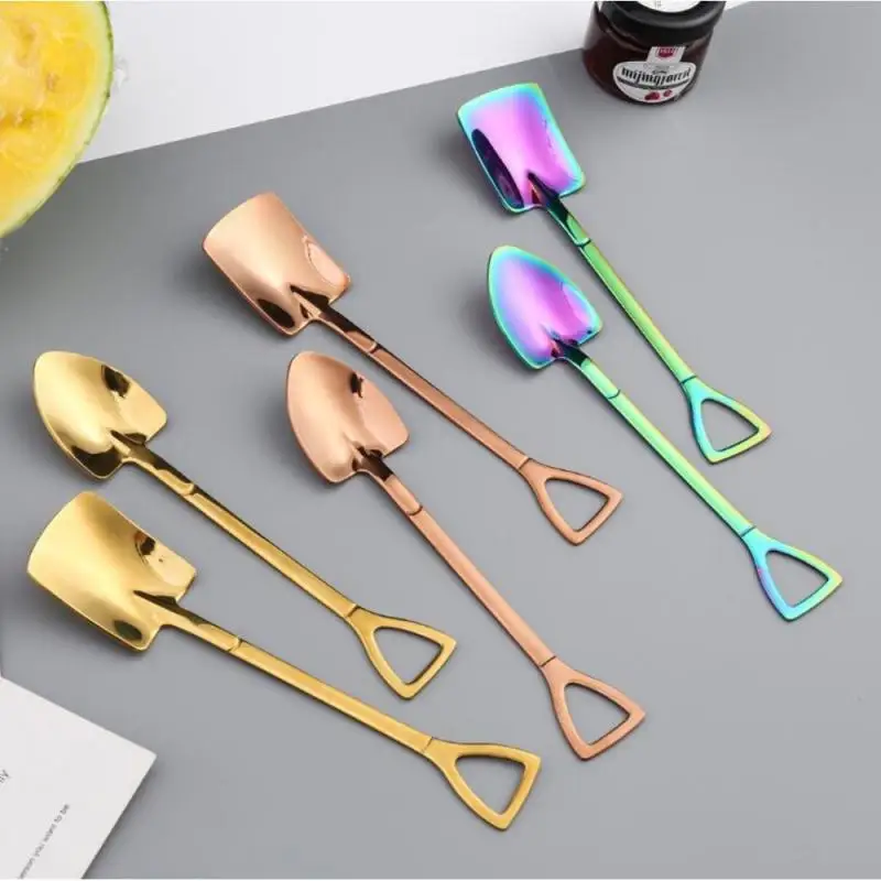2 шт.компл. железная ложка из нержавеющей стали, ложка для кофе, мороженого, инженерная лопата, симпатичная Ретро ложка с квадратной головкой, Красивая посуда