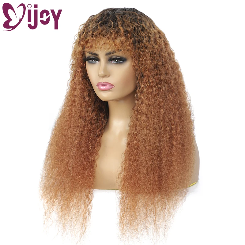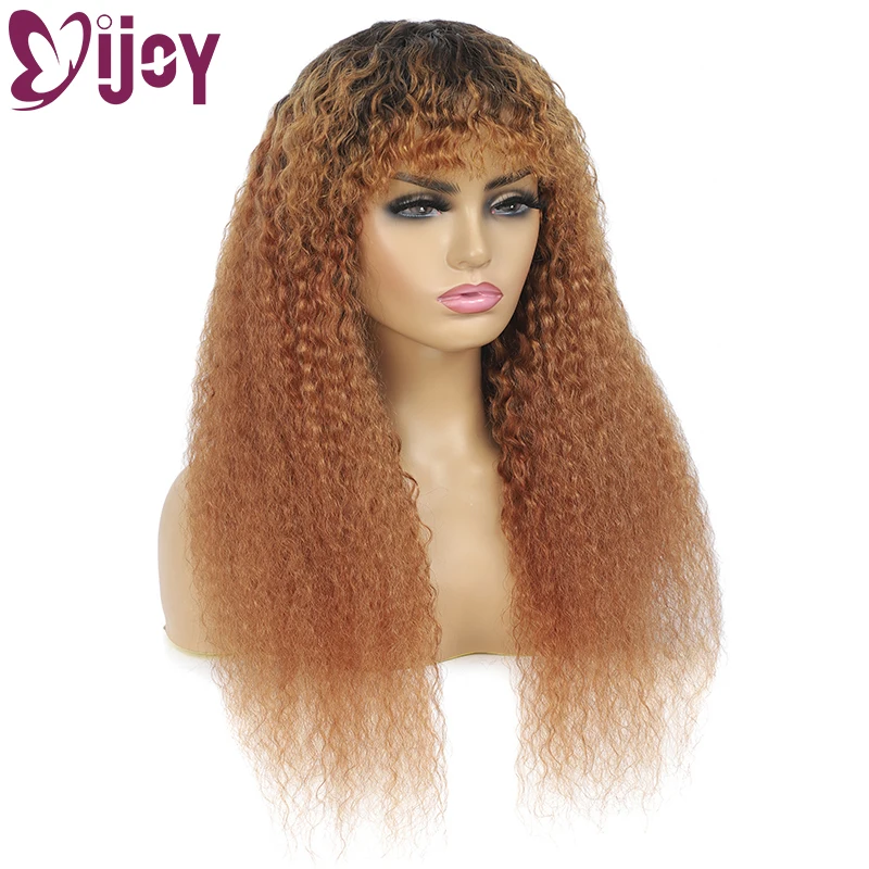 Курчавые прямые человеческие волосы парики с челкой Омбре Коричневые Бразильские человеческие волосы парики для черных женщин не Реми полностью машинные парики IJOY