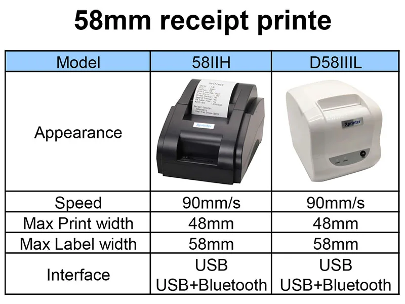 Принтер Xprinter 58 мм с Bluetooth, Pos-термальный принтер для печати небольших билетов, касса для торговых центров, ресторанов, предприятий общественного питания