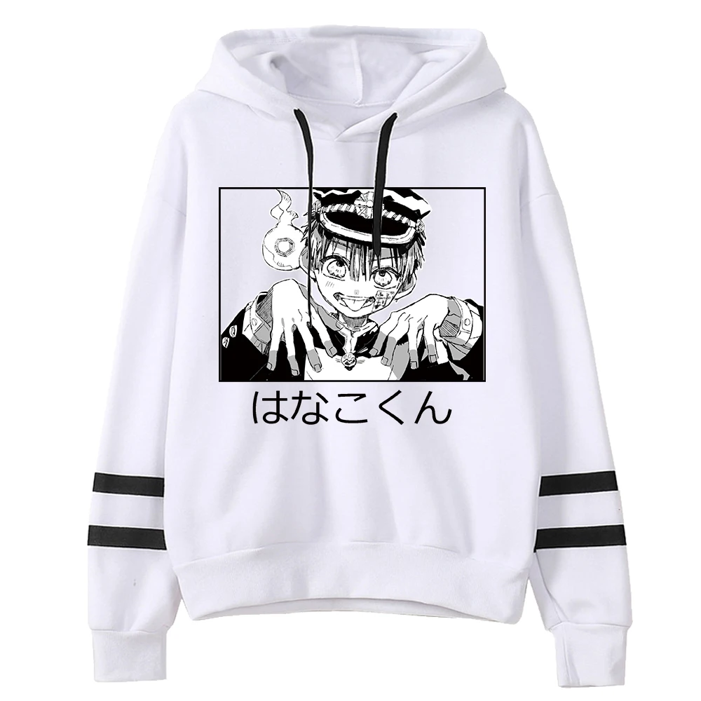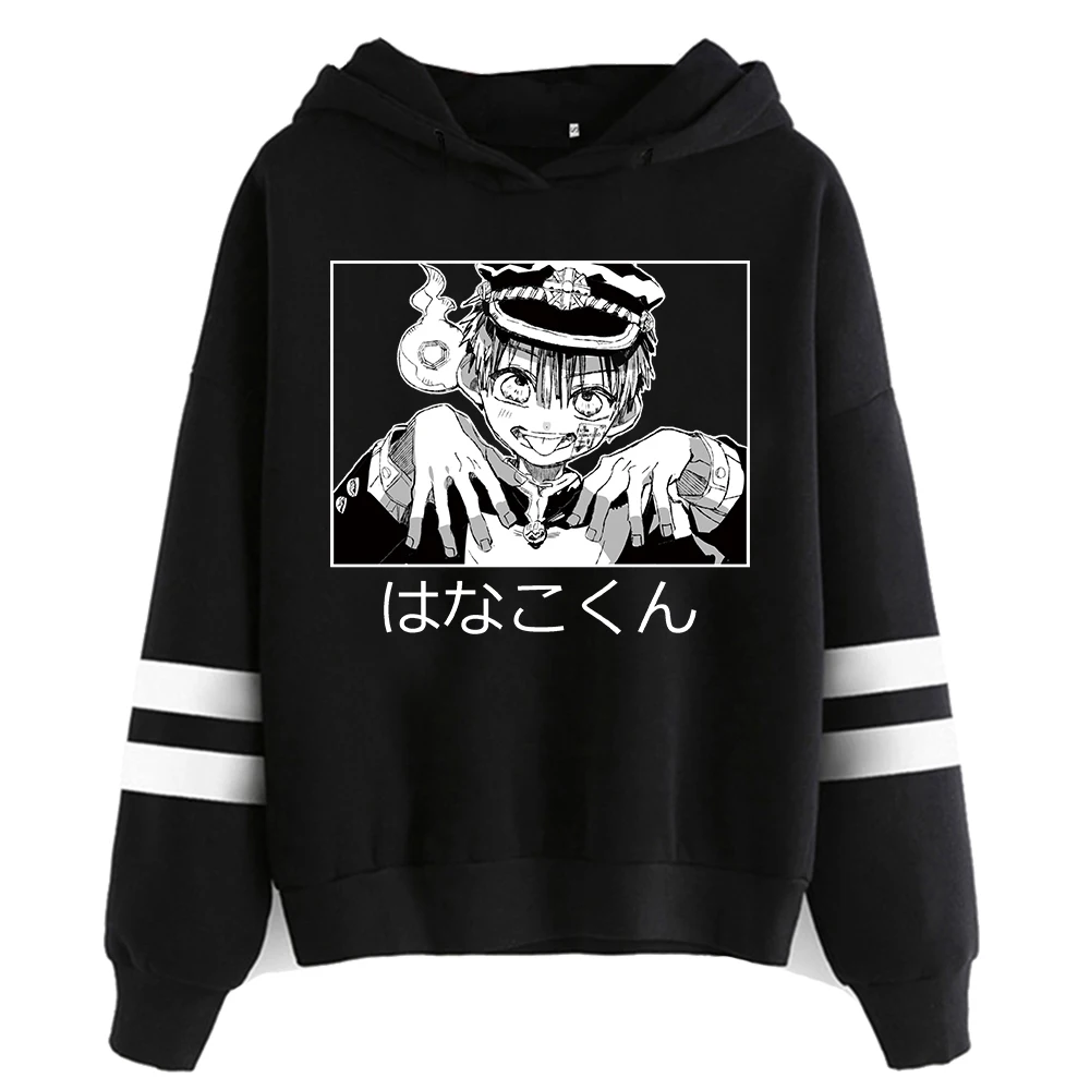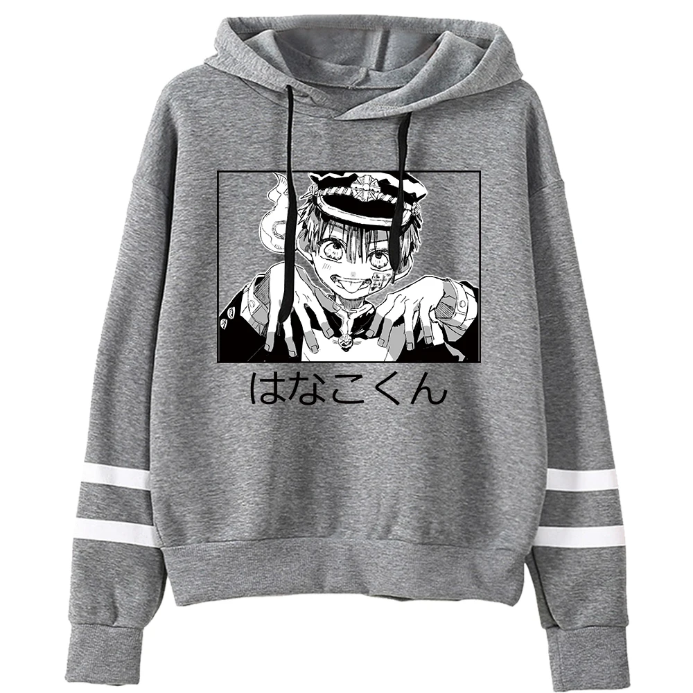 Женская толстовка в стиле аниме Ханако Кун, теплый зимний свитшот в полоску с мультяшным графическим принтом, пуловер