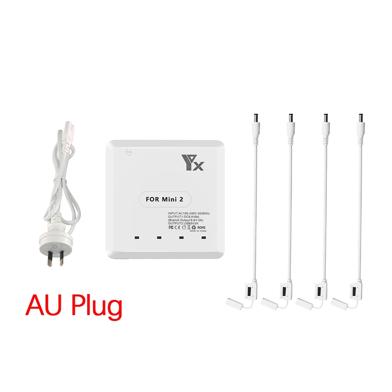 1. Продукт подходит для дрона DJI Mavic Mini 2. 2. Продукт может заряжать 4 батареи и 2 usb-интерфейса одновременно. 3. Продукт занимает около 70 минут для 4 батарей для одновременной зарядки. 4. Продукт имеет умное управление зарядным переключателем, позвольте вам беспокоиться и усилие, 5. Продукт имеет четыре вилки на выбор: штепсельная вилка США, штепсельная вилка Великобритании, штепсельная вилка европейского стандарта, штепсельная вилка австралийского стандарта. 6. Продукт имеет множественную защиту от зарядки.