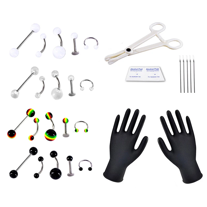 Набор инструментов для пирсинга тела, профессиональные ювелирные украшения для живота, носа, пупка, соска, иглы, кольцо, 1 комплект