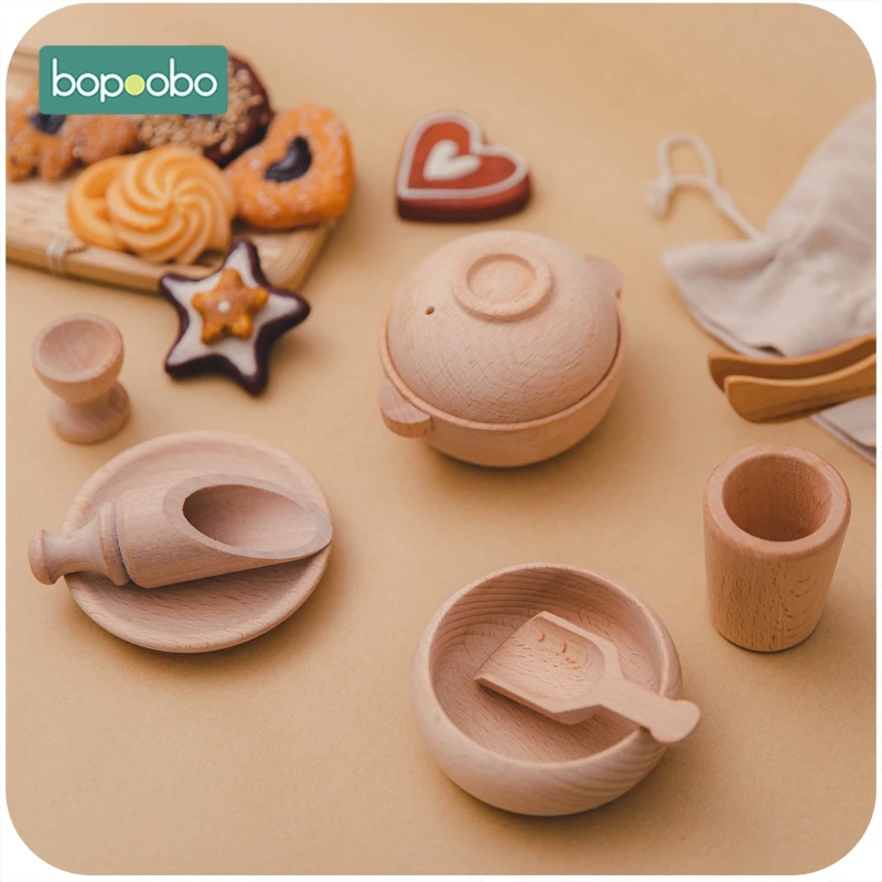 Bopoobo деревянные столовые приборы Монтессори ролевые игры чайный набор деревянная образовательная деятельность кухня еда игрушка Вдохновленный деревянные детские игрушки
