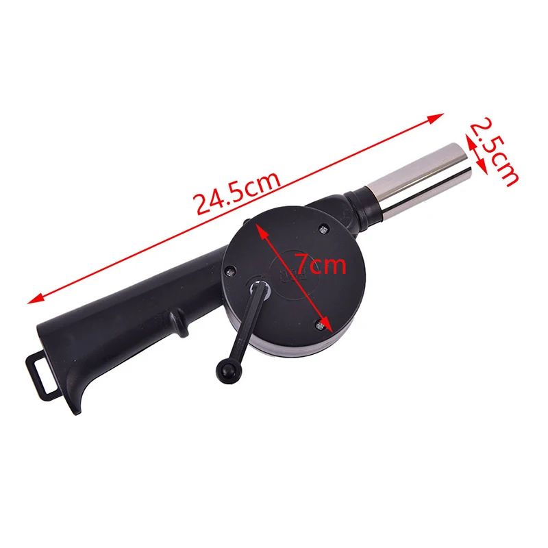 Особенности:1. Вентилятор для барбекю изготовлен из ABS + нержавеющей стали;2. Поможет вам легко надуть воздухом для гриля барбекю.3. Вентилятор для барбекю air belower широко используется для дома, кемпинга на открытом воздухе, пикника.