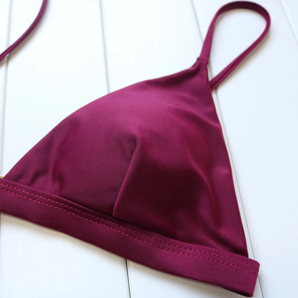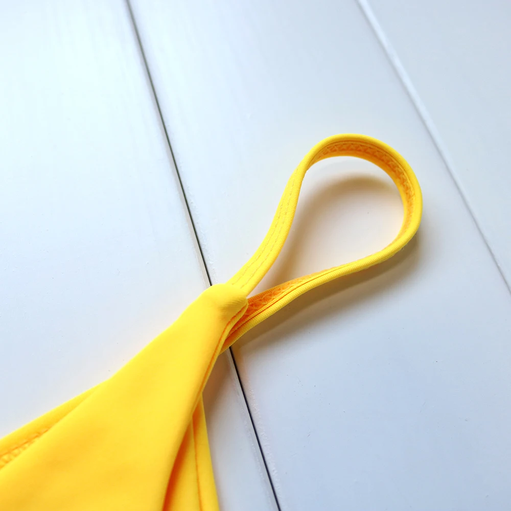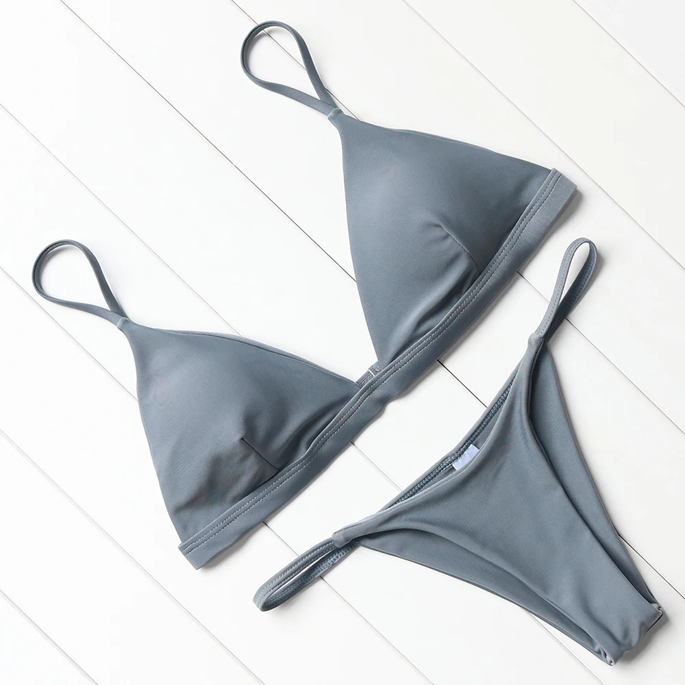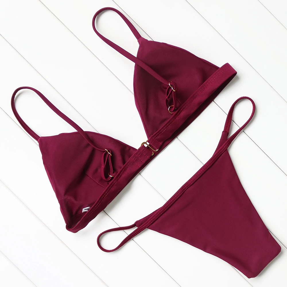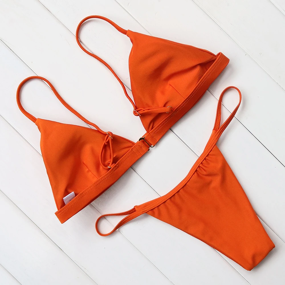 Однотонный комплект бикини с чашками пуш-ап, пикантный купальник, бразильский купальник с заниженной талией, халтер, мини пляжная одежда, комплект для плавания из двух предметов