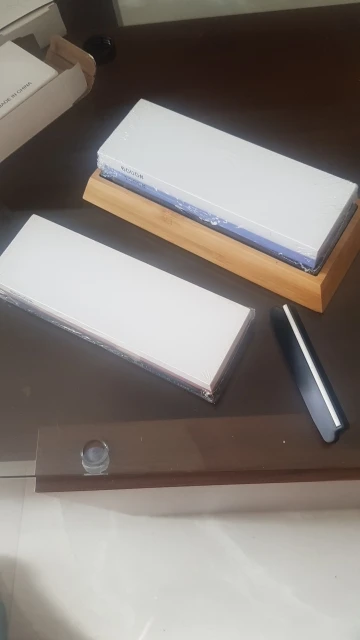 В целом все отлично. Держатель угла удобен для ножей с прямым острие, для разлелочных ножей угол с держателем выдержать трудно из за изгиба, для маленьких ноже держатель совсем неудобен. Возникло ощущение, что зернистостось ниже заявленной, сравнивал с макитовским бруском с зерном 1200. Но за такую цену приобритение очень хорошее. Было бы удобнее если бы брусок был шире на 1.5-2 см.