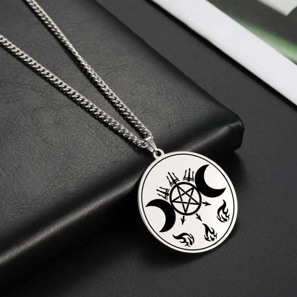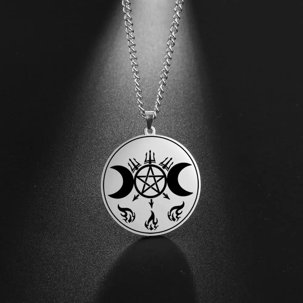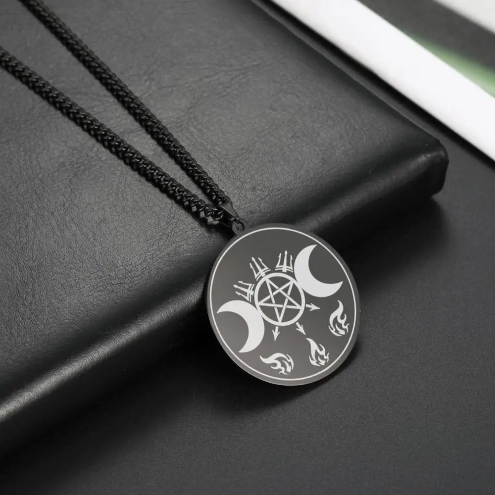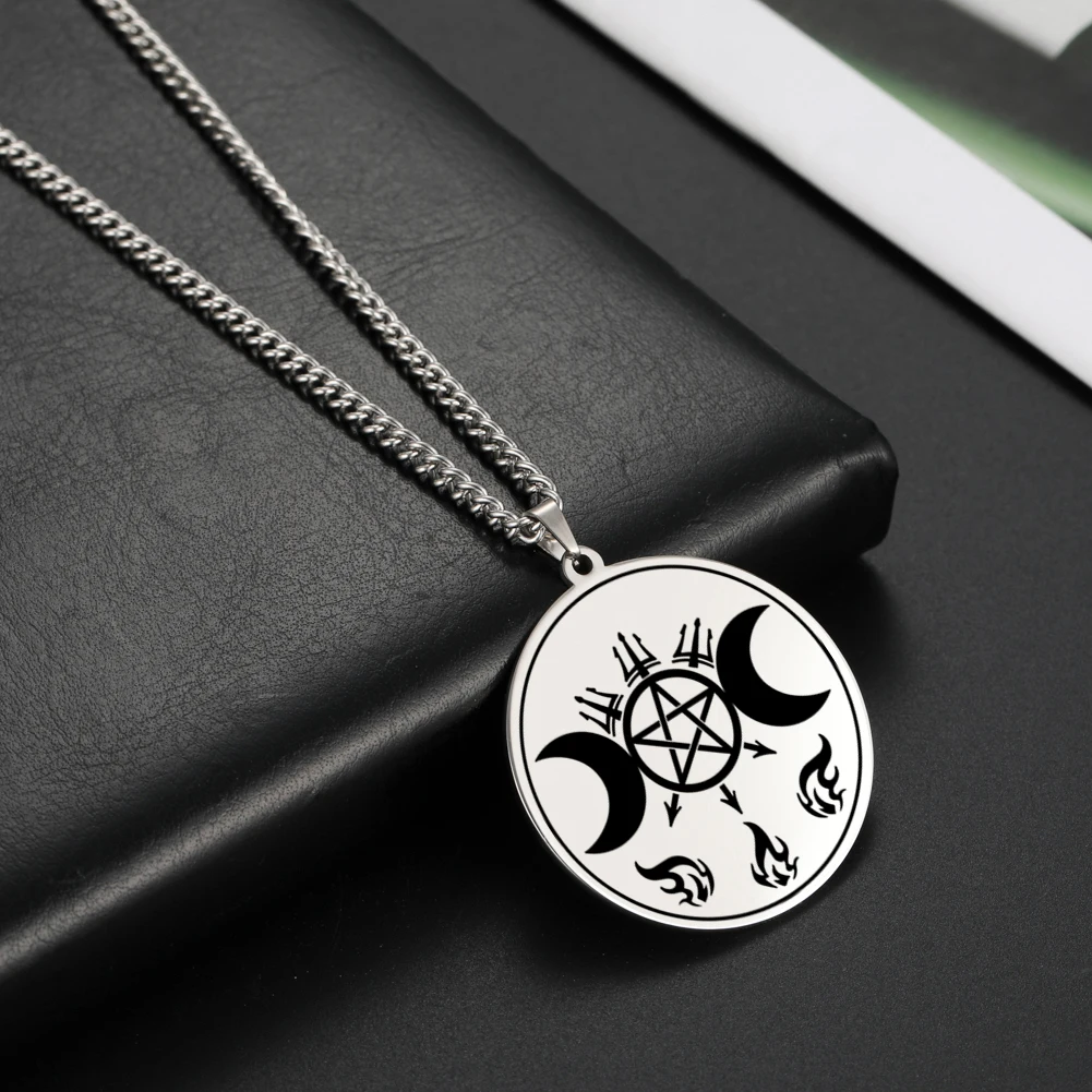 LIKGREAT Винтажное ожерелье Wicca для мужчин, звезда и луна, богиня, Hekate Witchcraft Power Kabbalah, амулет, ювелирные изделия из нержавеющей стали