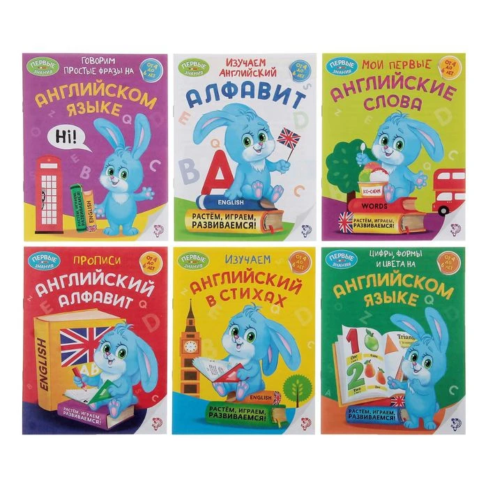 Обучающие книги Английский язык, 6 книг по 16 стр., в папке