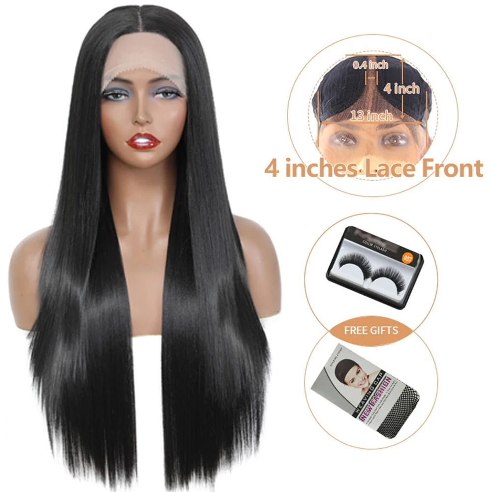 Парик с длинными прямыми волосами, синтетические волосы SOKU из термостойкого волокна, натуральные волосы средней длины для чернокожих женщин