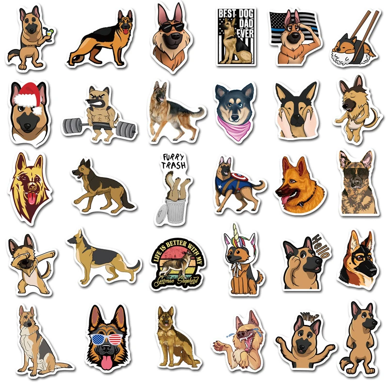 50 шт.упак., Мультяшные животные, наклейки немецкой овчарки, водонепроницаемые милые детские игрушки для скейтборда, багажа, мотоцикла