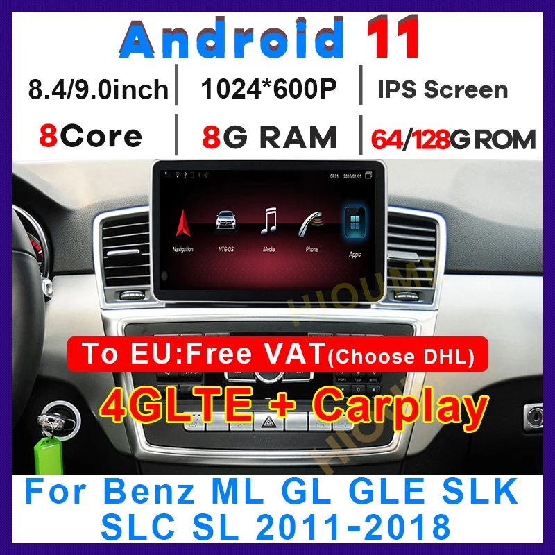 Автомагнитола на Android 11 8 + 128G, мультимедийный плеер для Mercedes Benz ML-Class GLS GLE SLK SLC SL ML W166 GL X166 Class Carplay