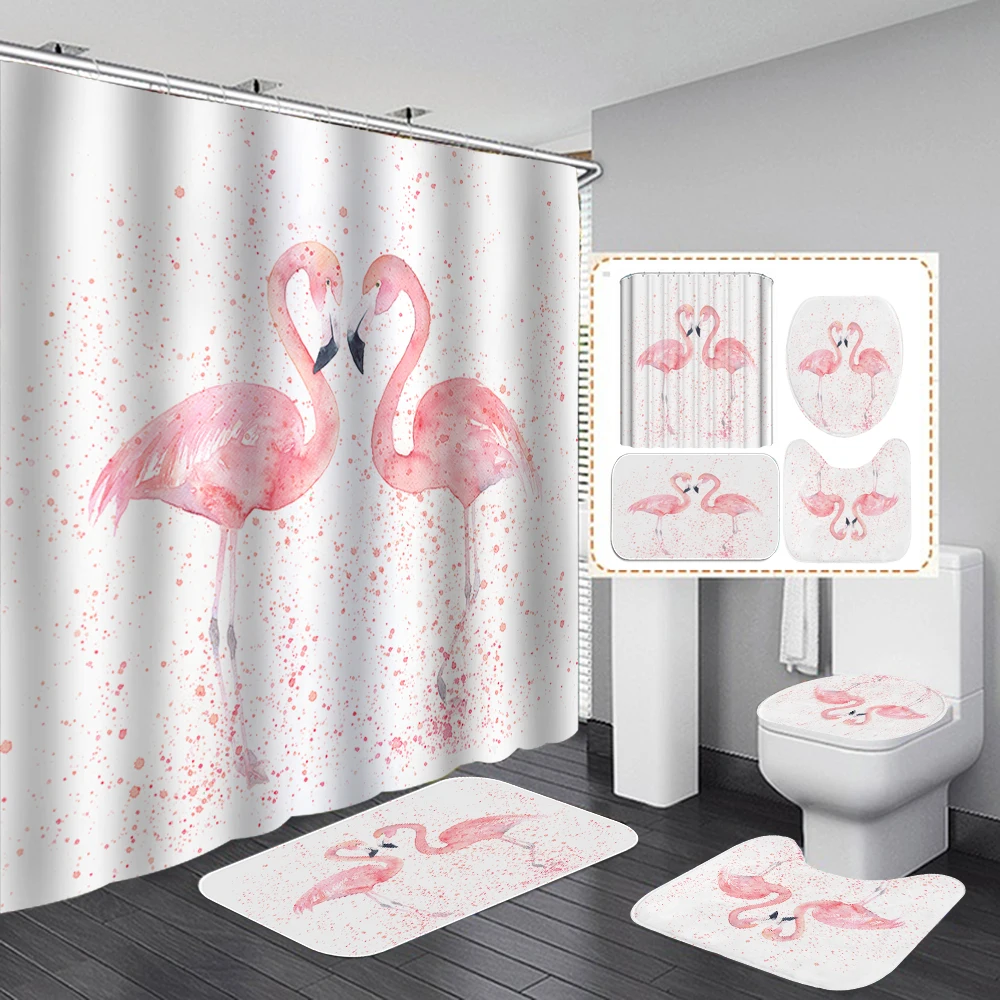 Розовая занавеска для душа из полиэстера с перьями фламинго, нескол...