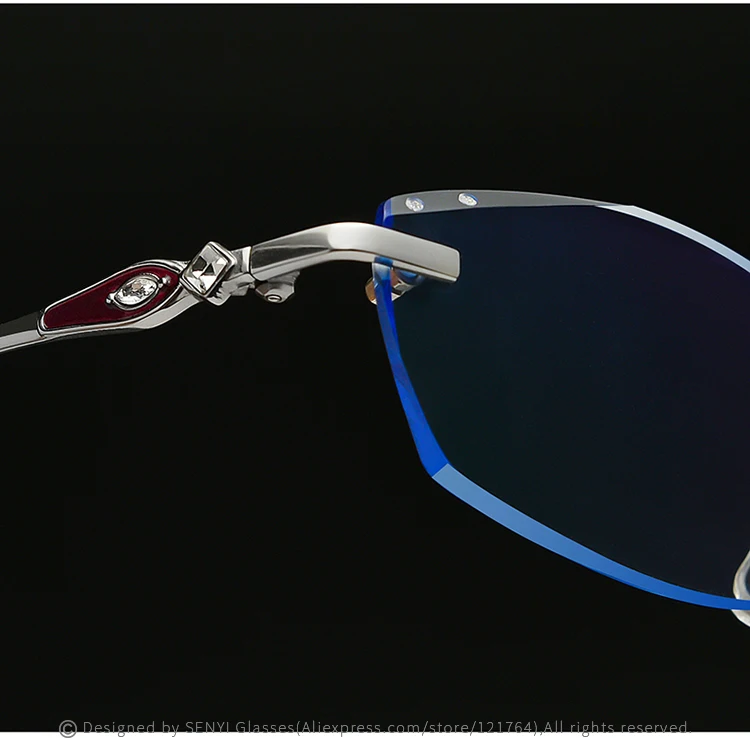 Титан анти голубой светильник очки без оправы для женщин Близорукость Ti компьютерные очки Стразы Леди фиолетовый алмазные режущие очки