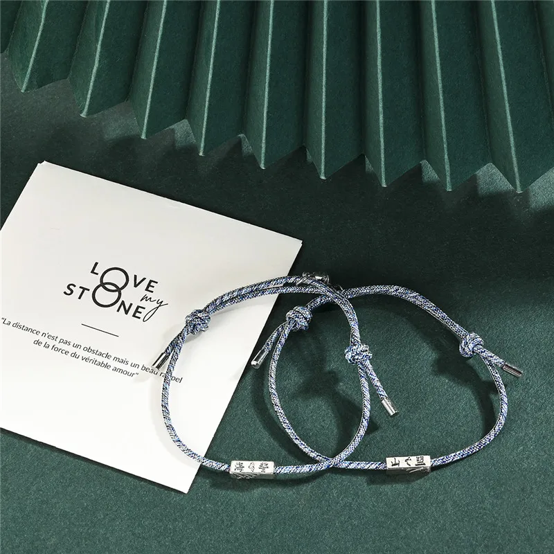 2 шт.компл. плетеные браслеты из веревки для пары романтичные Подвески с неизменным обручем с магнитными колокольчиками веревочный браслет для женщин и мужчин