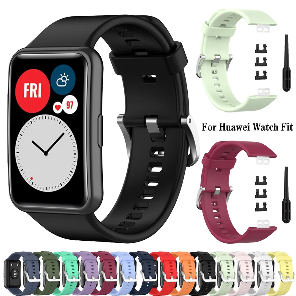 Силиконовый ремешок для Huawei Watch Fit, ремешок с инструментом для защиты экрана часов, браслет Correa для Huawei Fit, ремешок для смарт-часов, 2020