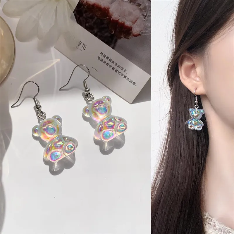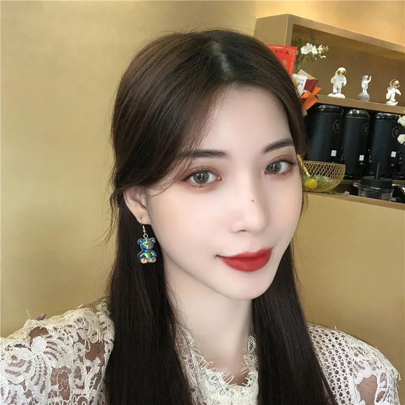 2021 Новая мода милый романтический Bling милый медведь серьги клипсы для женщин и девочек милый Имитация пирсинга из нержавеющей стали, ушные украшения