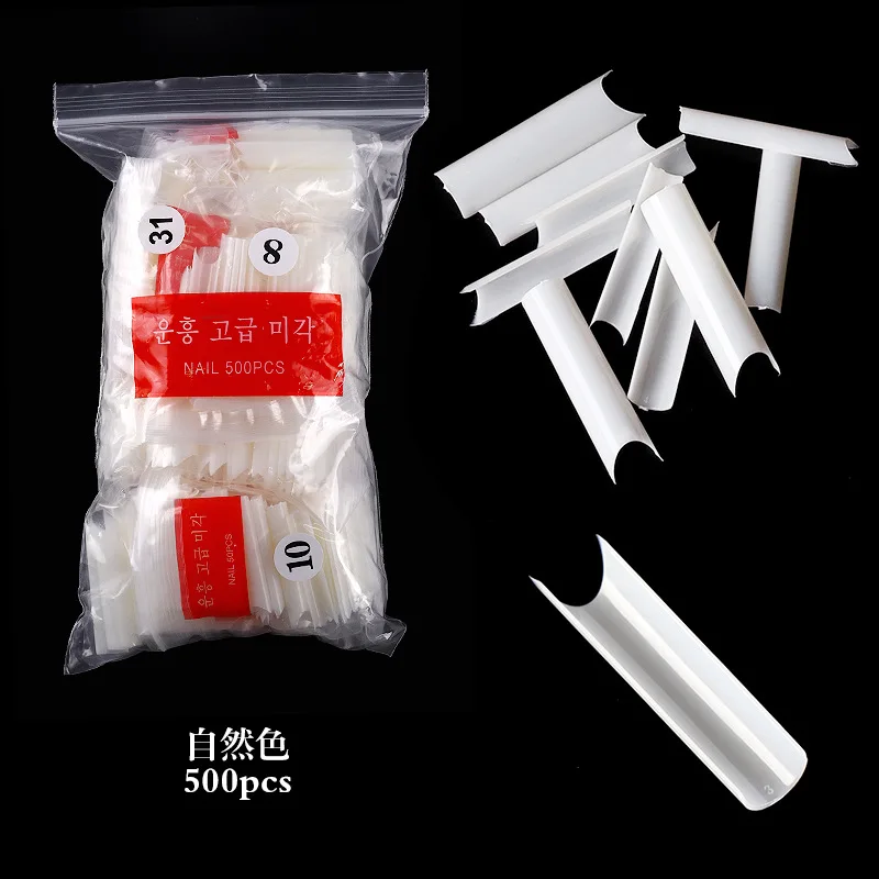 500 шт., глубокие изогнутые квадратные Типсы для французских накладных ногтей, акриловые полупокрытия 10 размеров для салонов и практика ногтевого искусства сделай сам