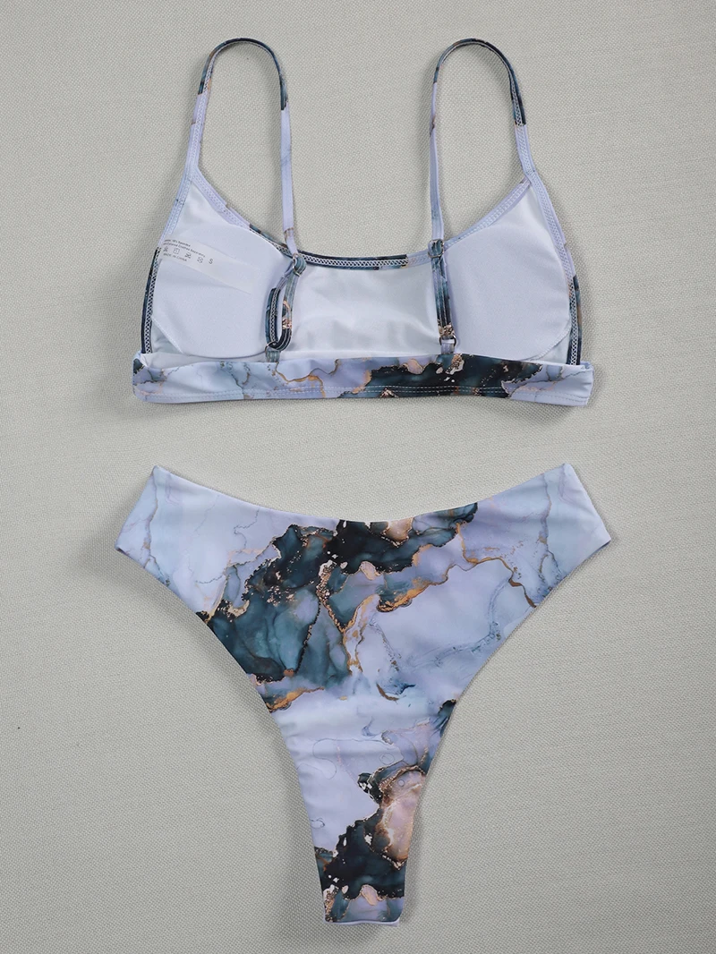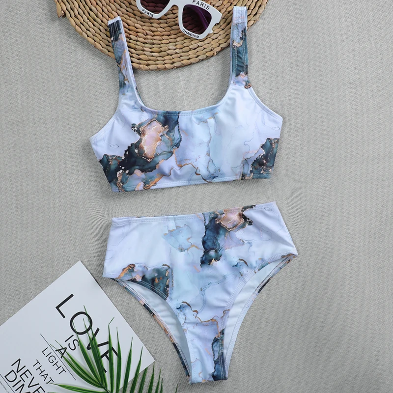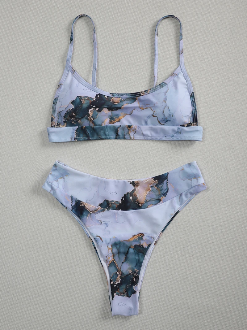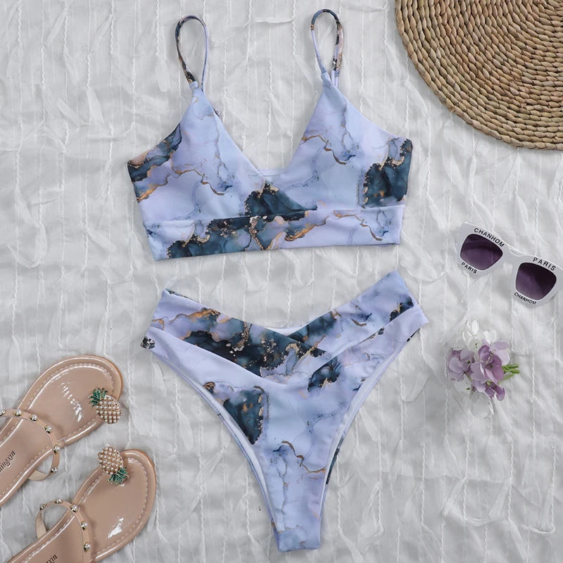 Бикини с мраморным принтом, женский купальник, комплект бикини с высокой талией, Купальники пуш-ап, Женский Бразильский купальный костюм, пляжная одежда, бикини, 2021