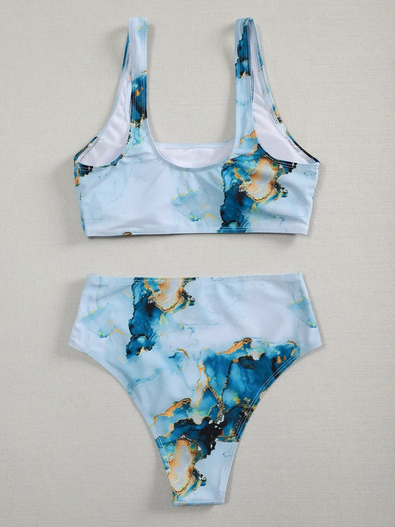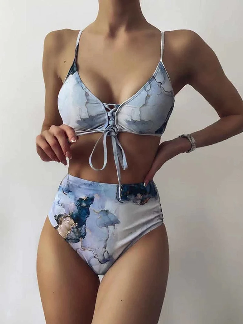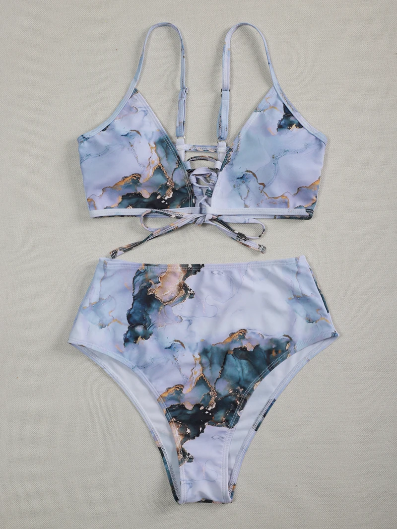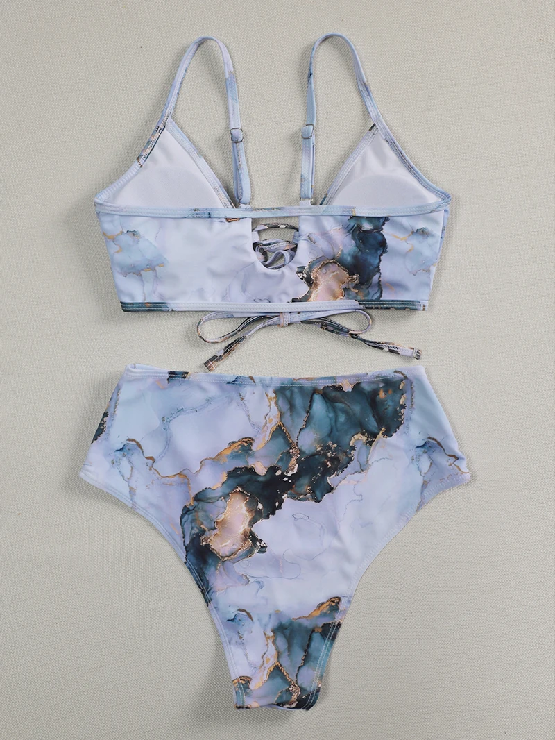 Бикини с мраморным принтом, женский купальник, комплект бикини с высокой талией, Купальники пуш-ап, Женский Бразильский купальный костюм, пляжная одежда, бикини, 2021