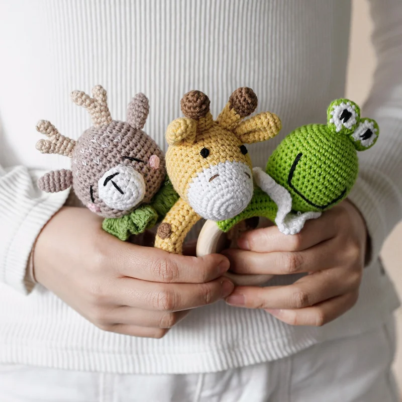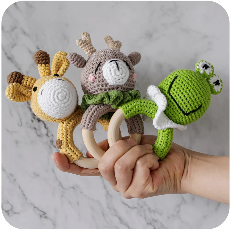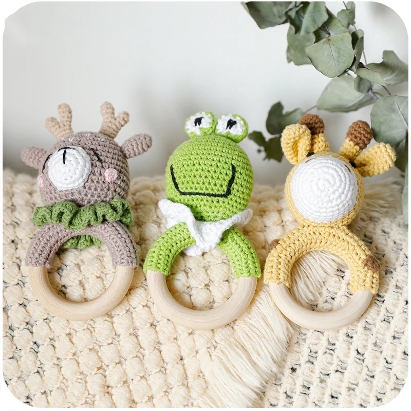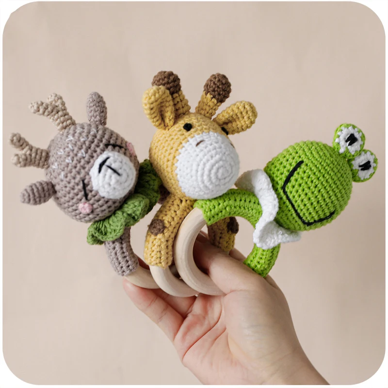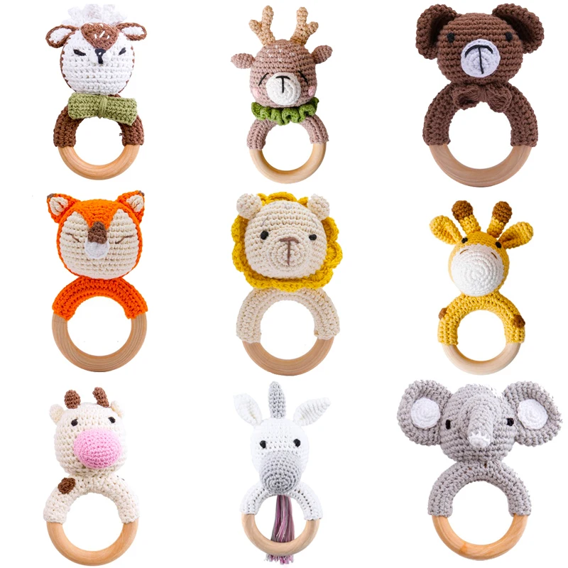 3 шт детские погремушки игрушки мультфильм Животные вязание крючком деревянные кольца погремушка DIY связанная крючком погремушка браслет набор для прорезывания зубов детский продукт