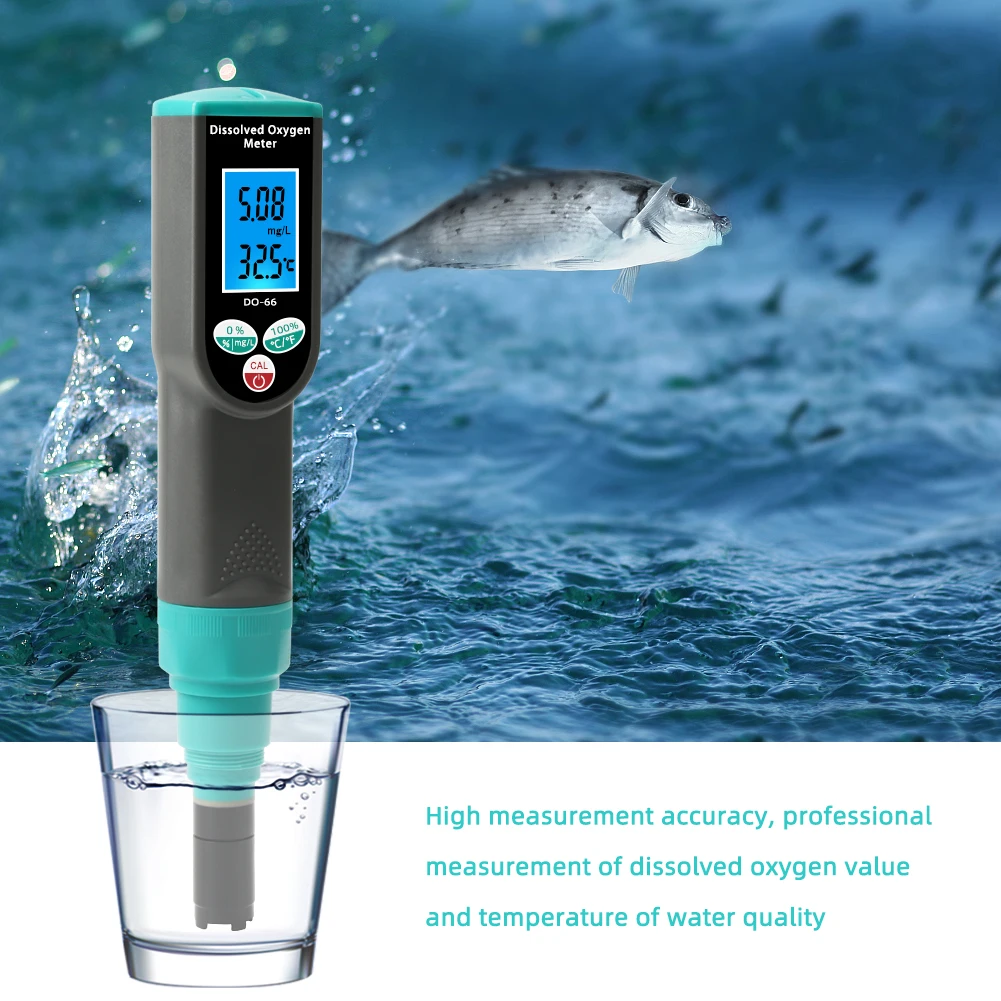 Yieryi DO-66 Интеллектуальный анализатор растворенного кислорода с ЖК-дисплеем Цифровой тестер растворенного кислорода для аквариума, аквариума, аквакультуры