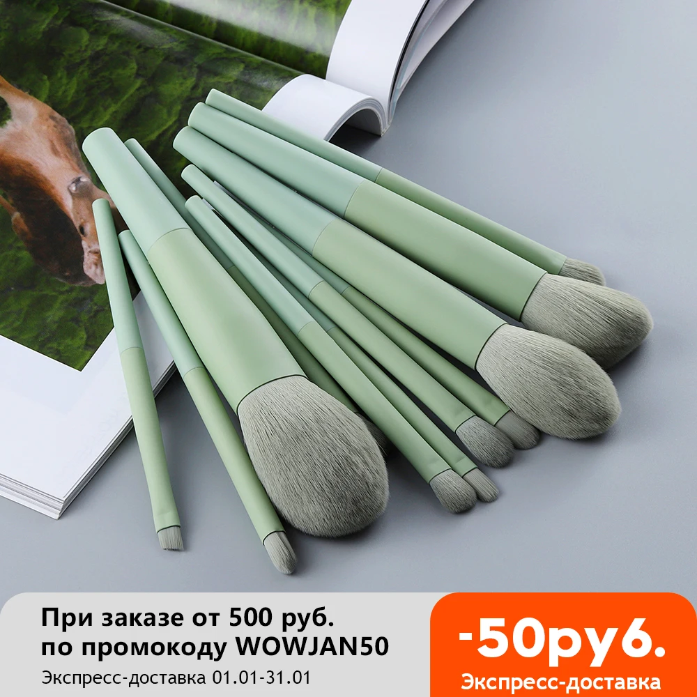 FLD 11/8 шт., натуральные зеленые кисти для макияжа, пудра для основы, тени для век, набор кистей для бровей, косметический инструмент, профессиональный макияж