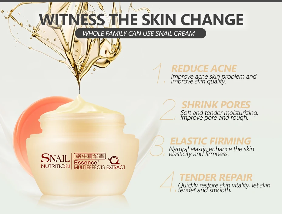 Эссенция крем на основе улиточного секрета (муцин) Уход за кожей лица лечения Уменьшите шрамы Угри Прыщи увлажняющий отбеливающий крем против морщин старения