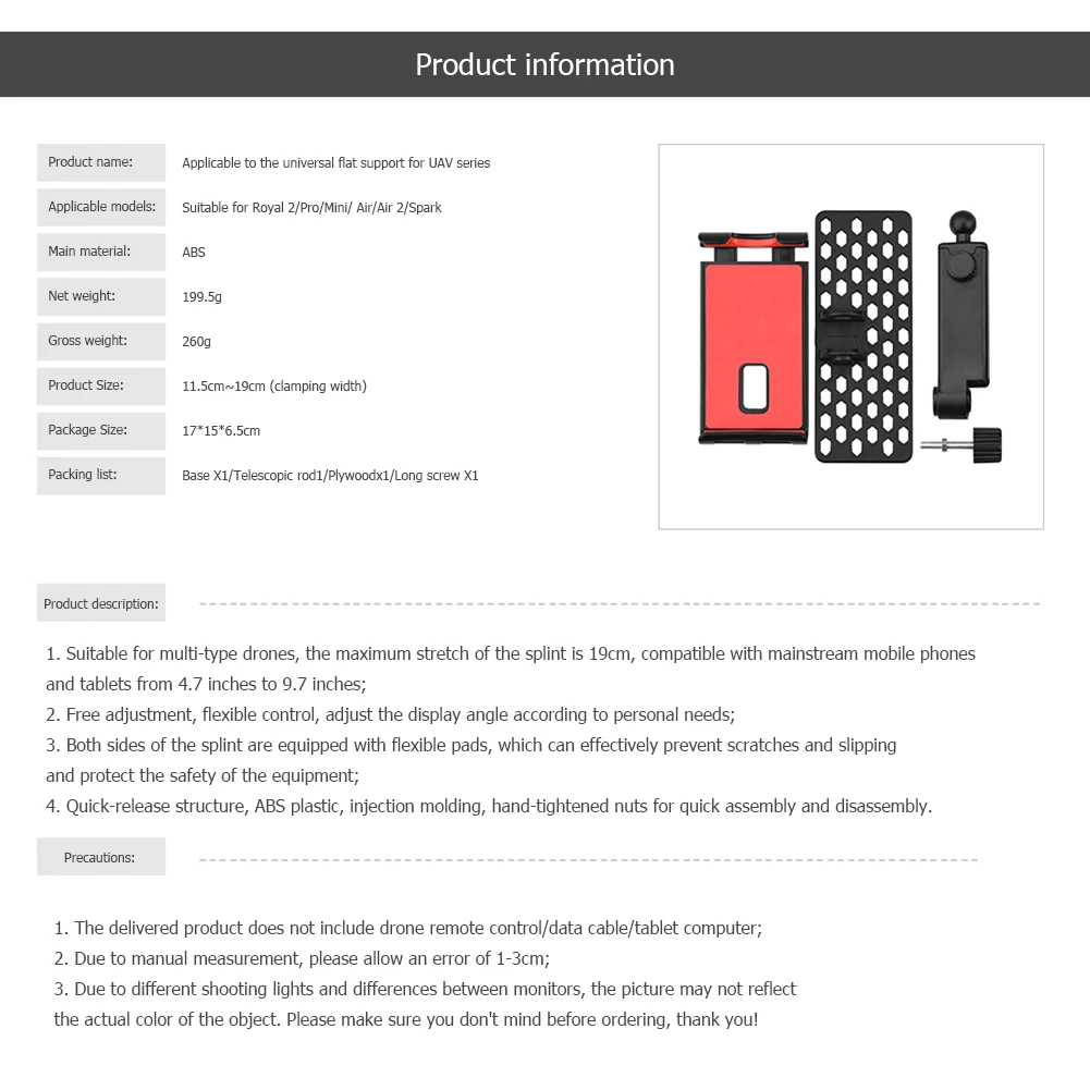 1. Подходит для нескольких моделей дронов, совместим с основными мобильными телефонами и планшетами от 4,7 до 9,7 дюймов;