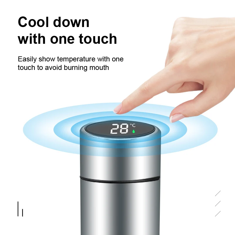 термос для чая Интеллигентая (ый) Нержавеющаясталь термос чашка Температура Дисплей с двойными стенками из нержавеющей стали Вакуумная Портативный дорожный термос для кофе кружка 500 мл