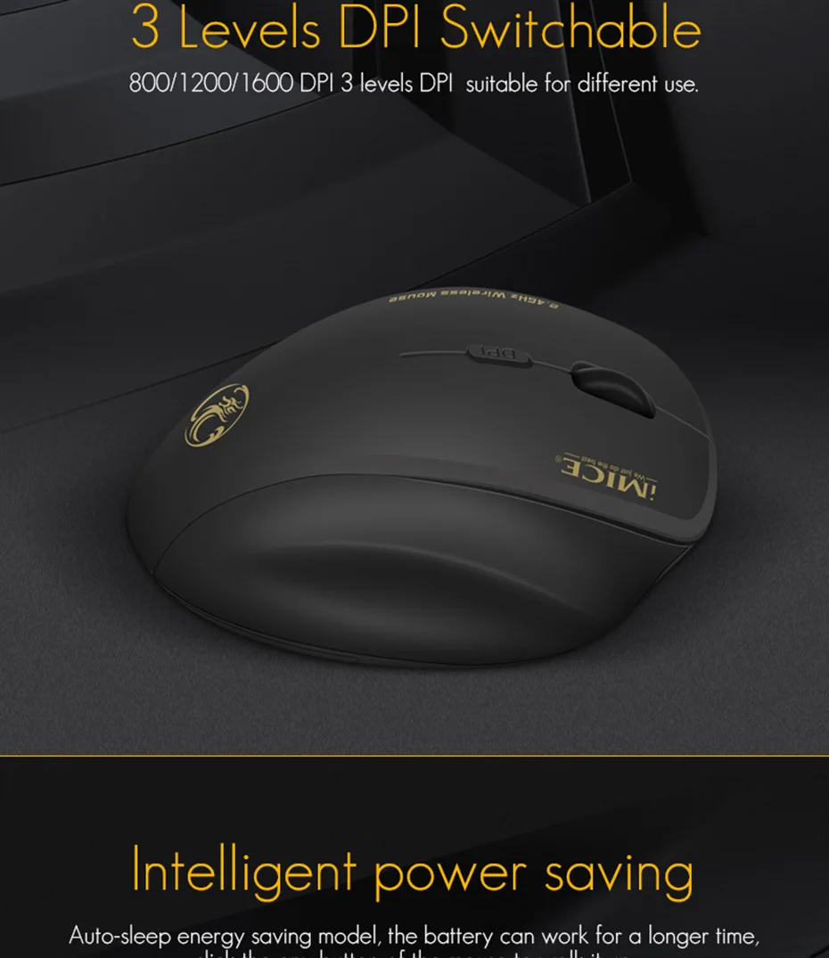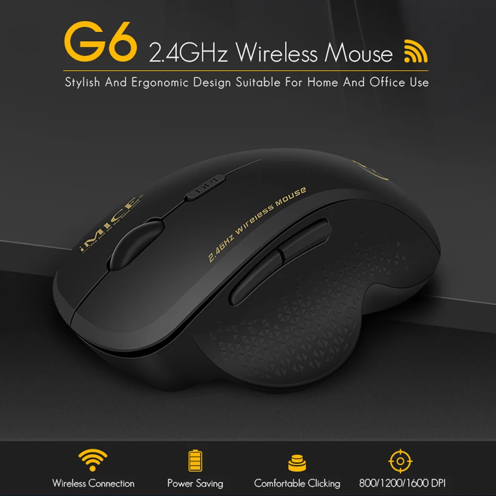 Беспроводная мышь iMice, 2,4 ГГц, 1600 DPI, эргономичная, энергосберегающая, оптическая, USB, для ноутбука, ПК