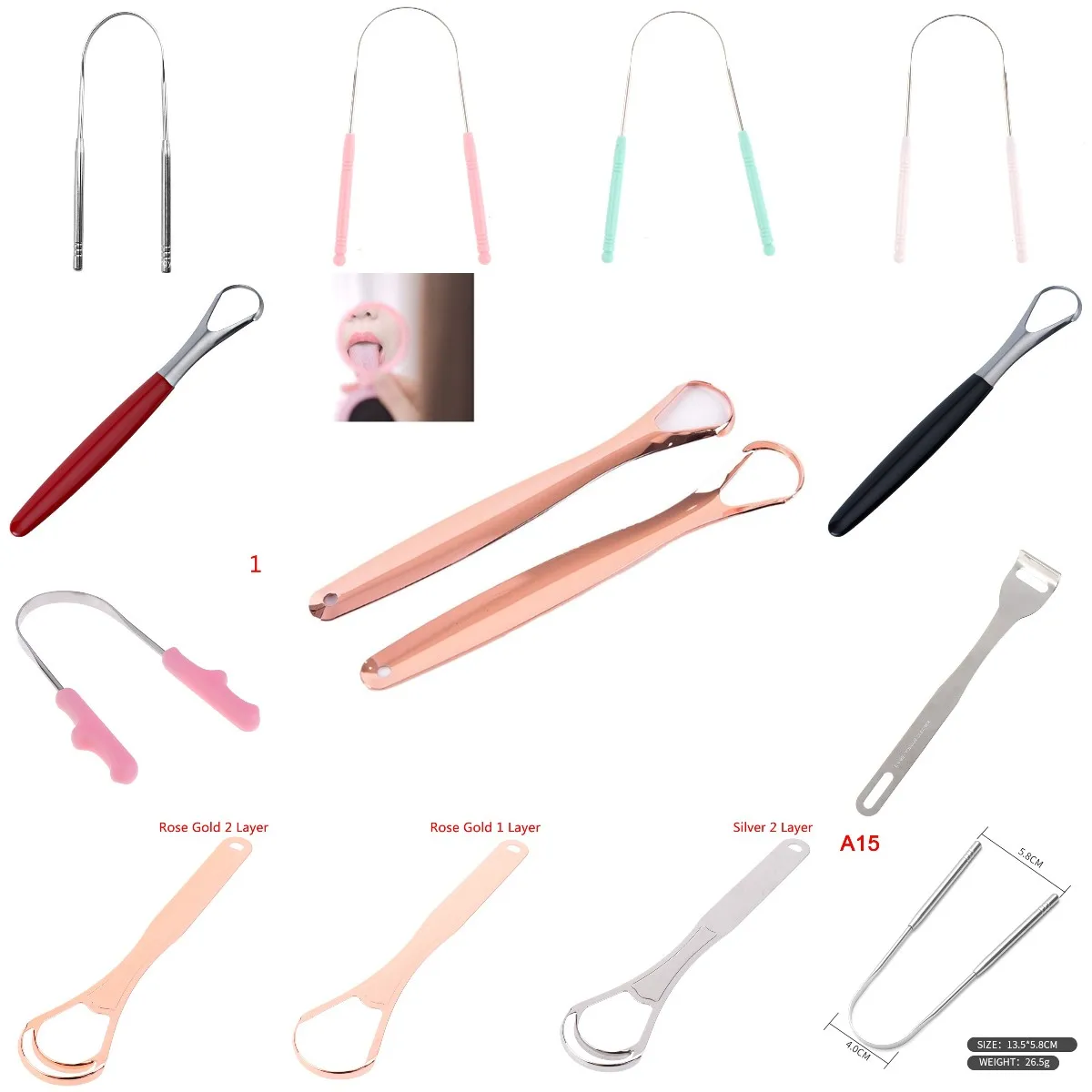 Скребок для языка, из нержавеющей стали, 15 видов