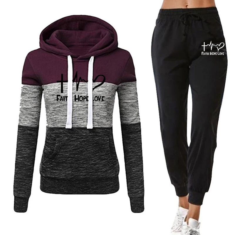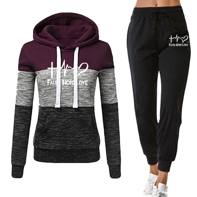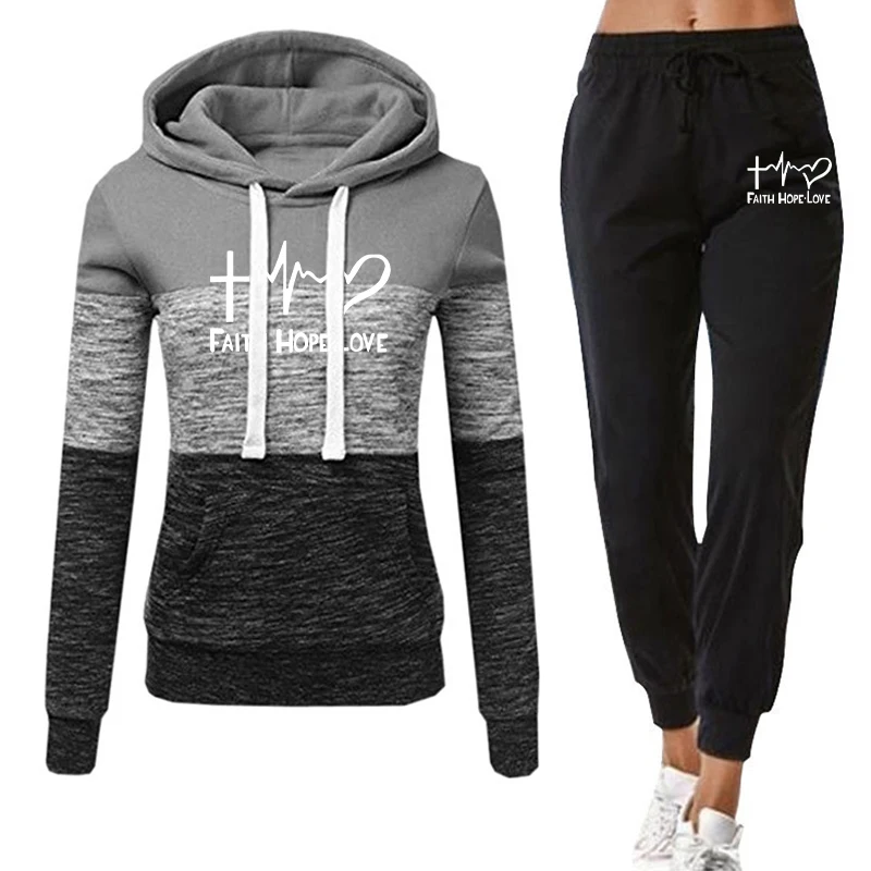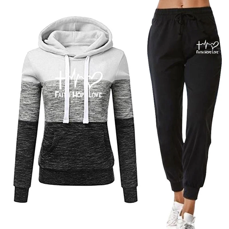 Женский спортивный костюм, толстовка с капюшоном и брюки с принтом,...