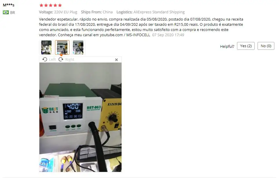 Страна: BR Color: 220V EU Plug Ships From: China Доставка: Standard Shipping 06.03.2021