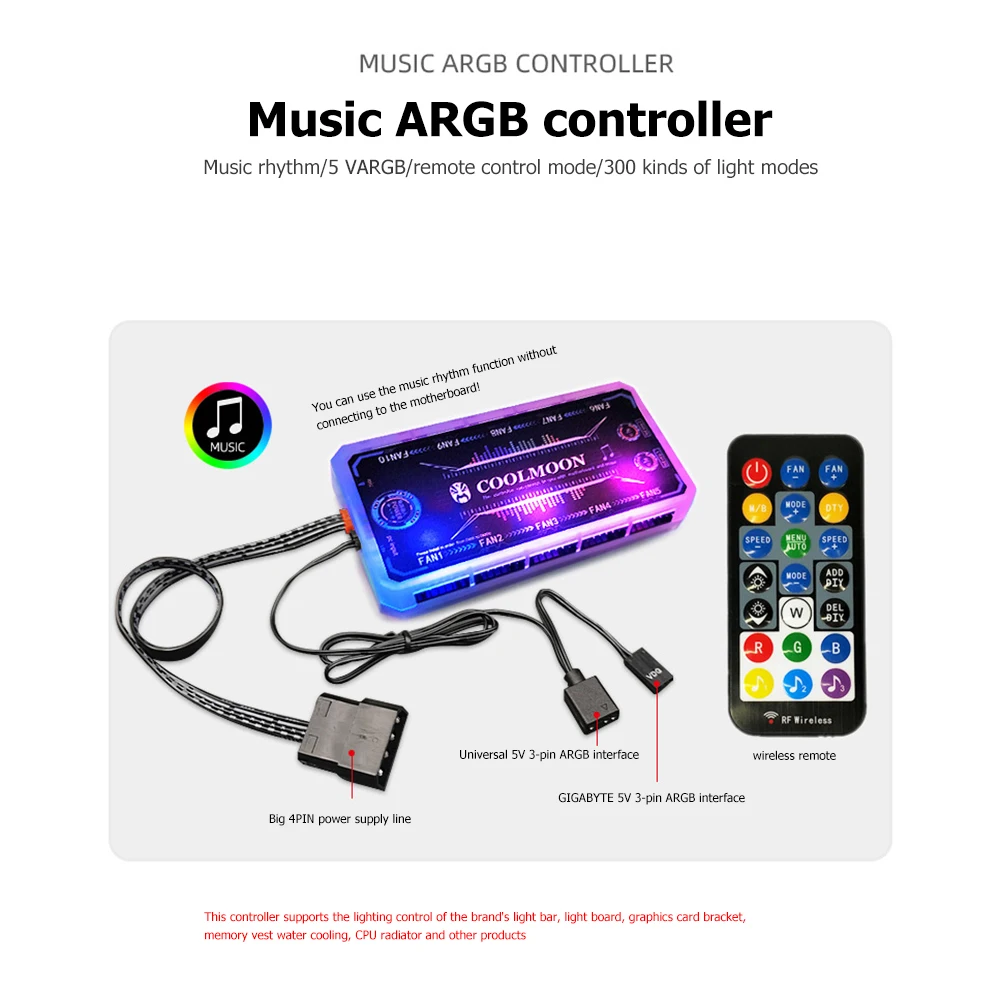 COOLMOON 120 мм RGB шасси вентилятор охлаждения 5V 3Pin ARGB освещение тихий Настольный ПК жёсткий чехол Радиатор охлаждения