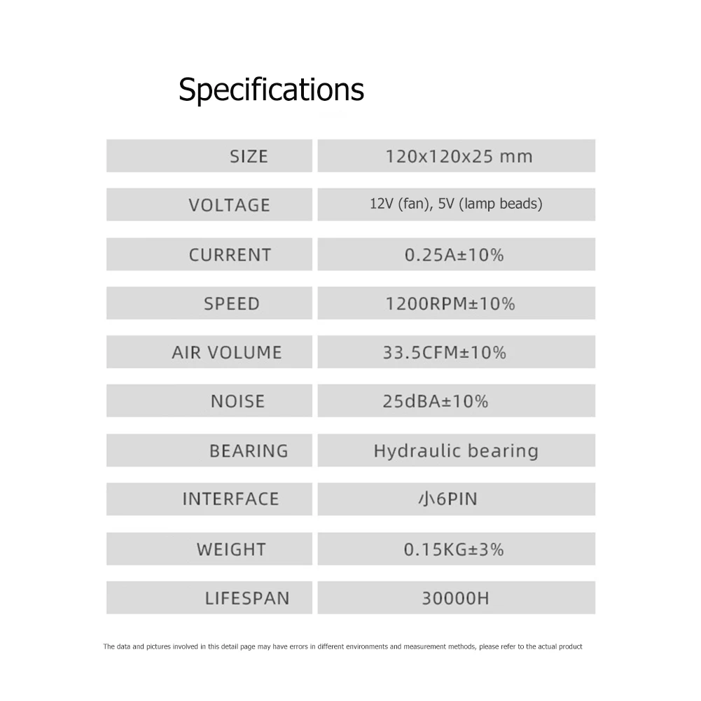 Напряжение: 12 В (вентилятор), 5 В (Ламповые бусины)