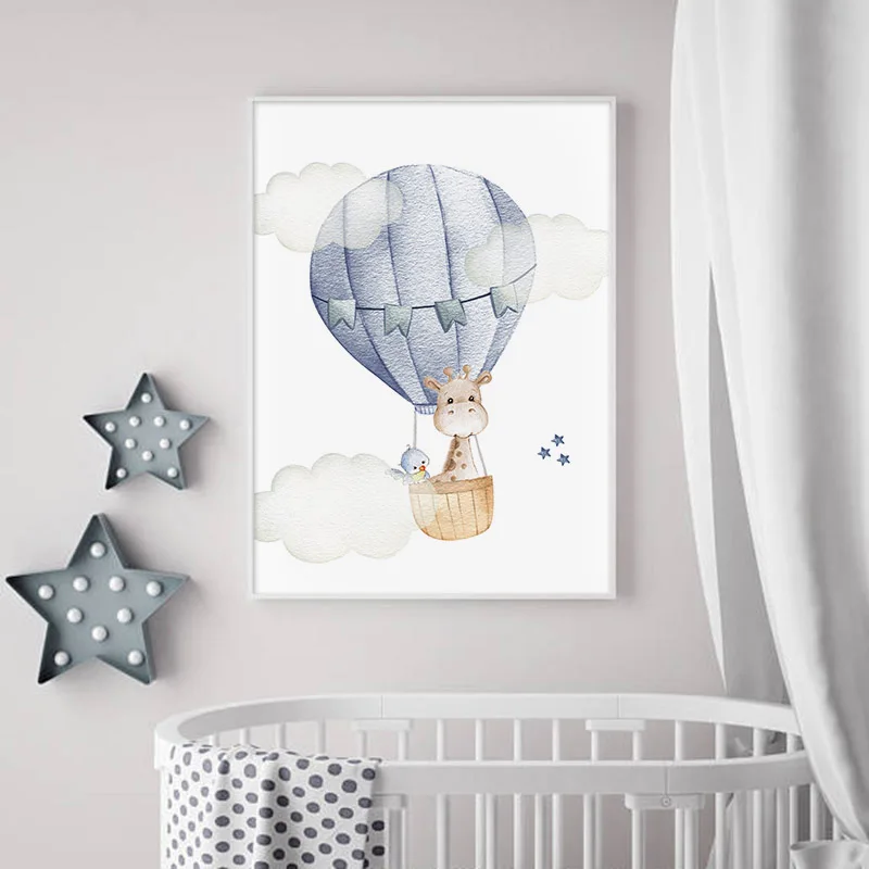 Синий воздушный шар животное холст картина Лев Жираф искусство фото...