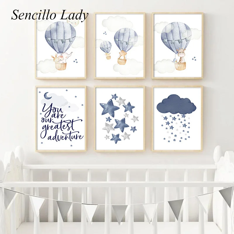 Настенная картина для мальчиков, плакат с синими воздушными шарами,...