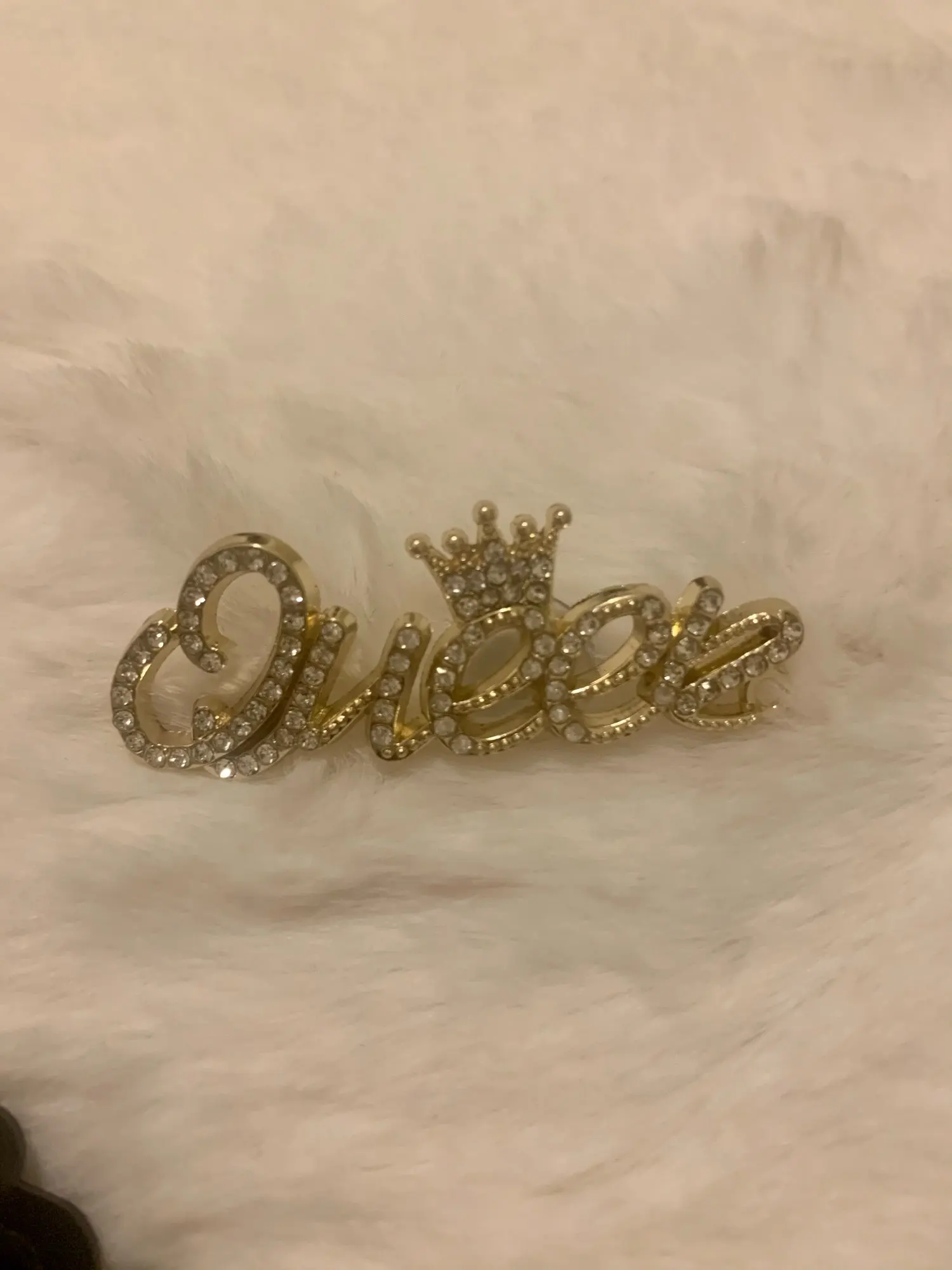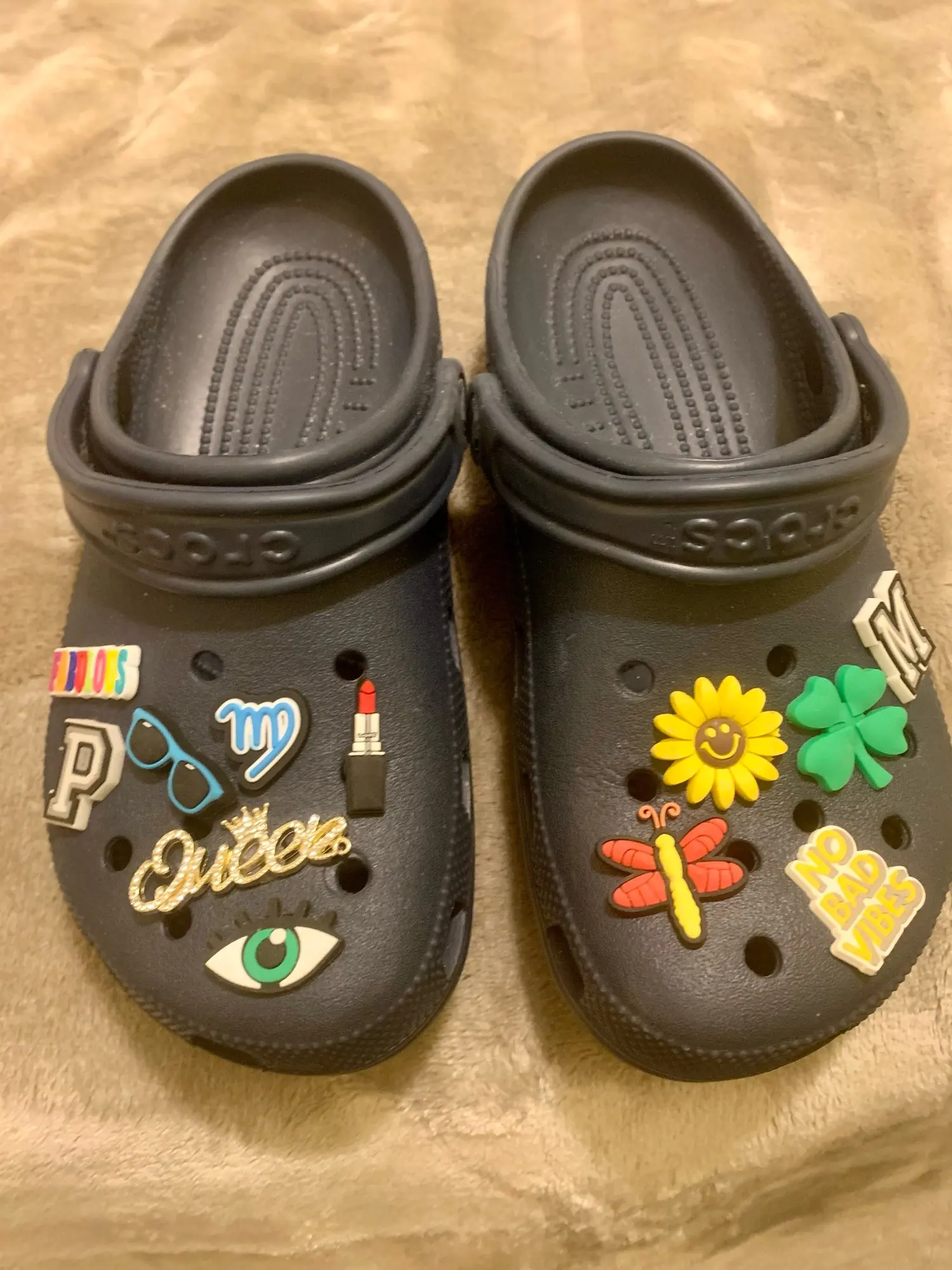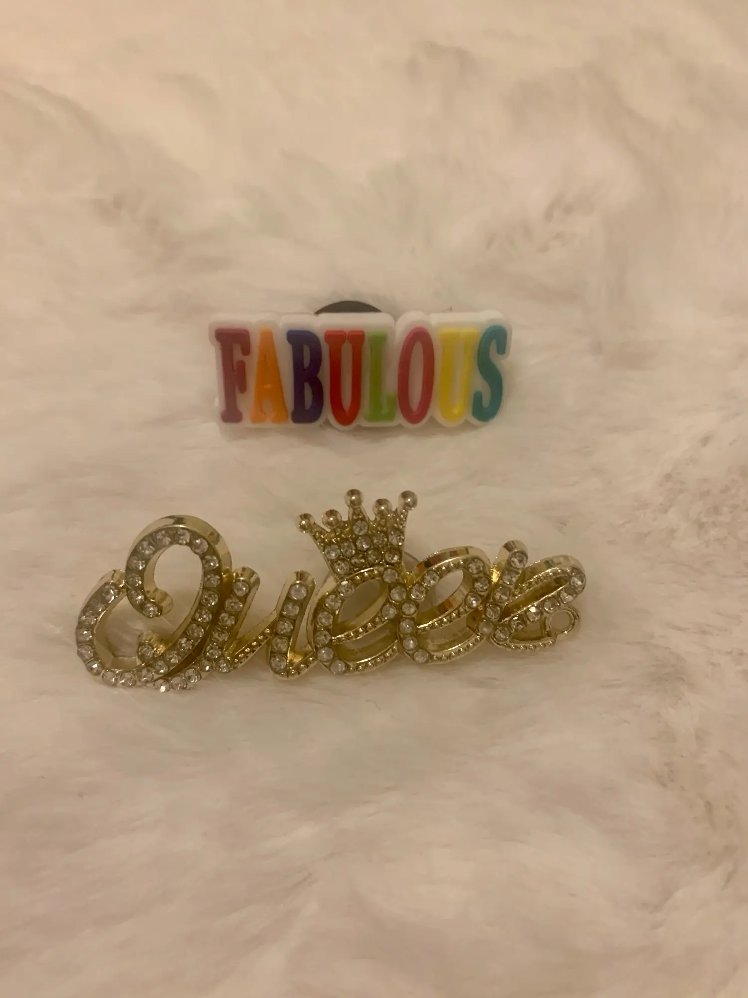 I thought it said queen but it says Queer. It's still very pretty but the part that goes into the croc hole broke off when I unpacked it